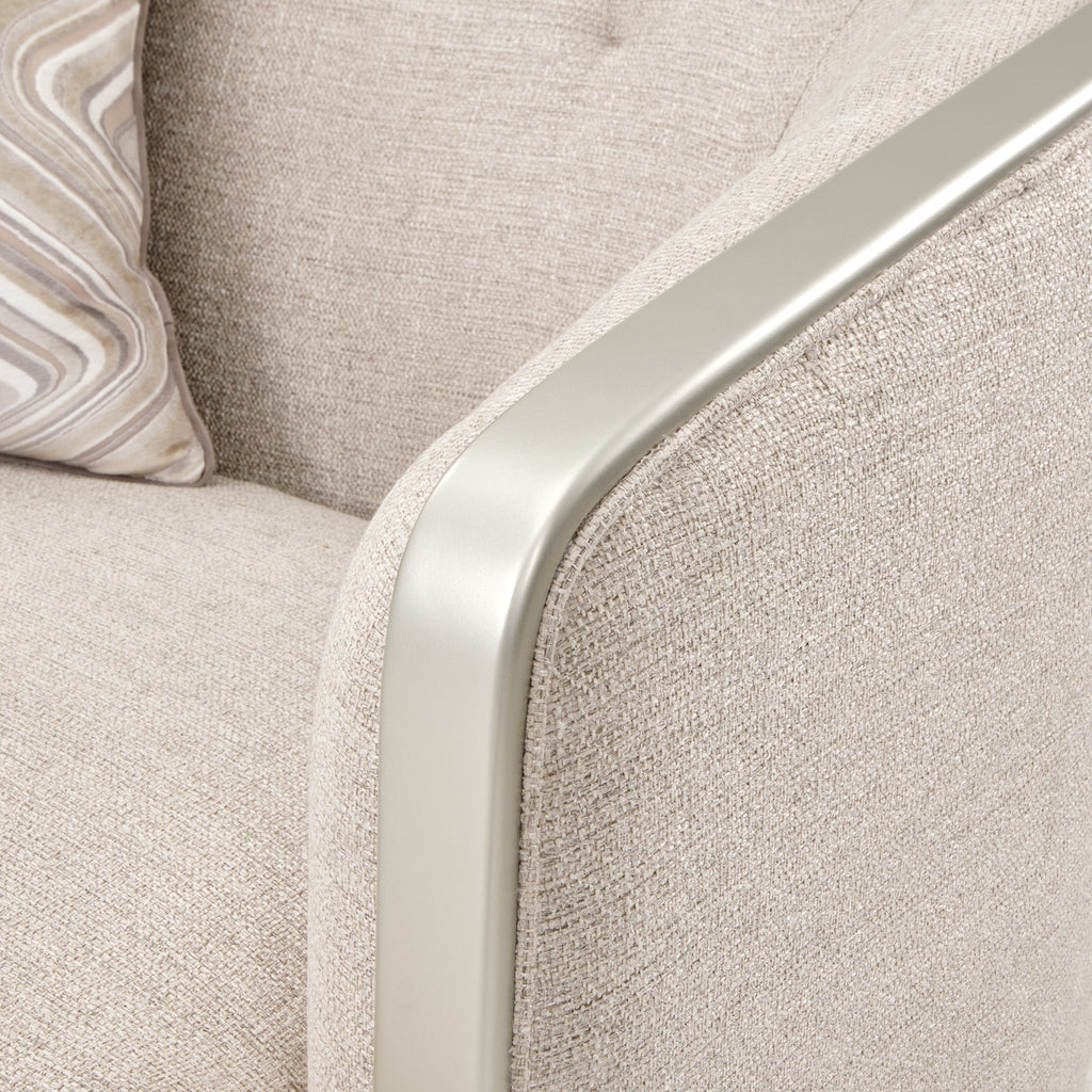 Create an atmosphere of luxury with the Camden Court Chair and a Half! This piece brings an effortlessly modern style with high-quality acrylic feet, Platinum trims that give off a subtle shine, and elegant fabric that evokes raw woven silk.