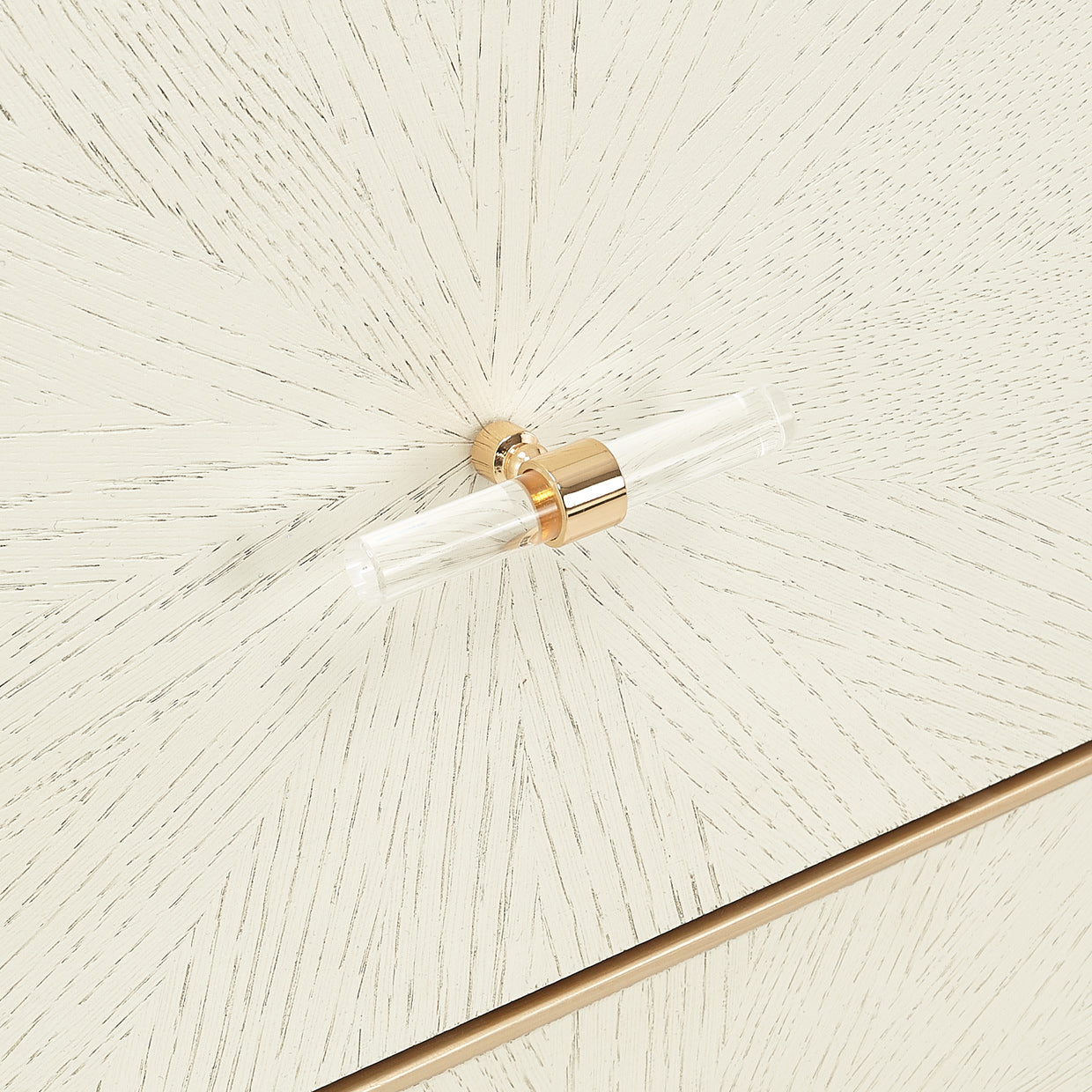 - Two velvet lined drawers with soft closing glides and acrylic pulls