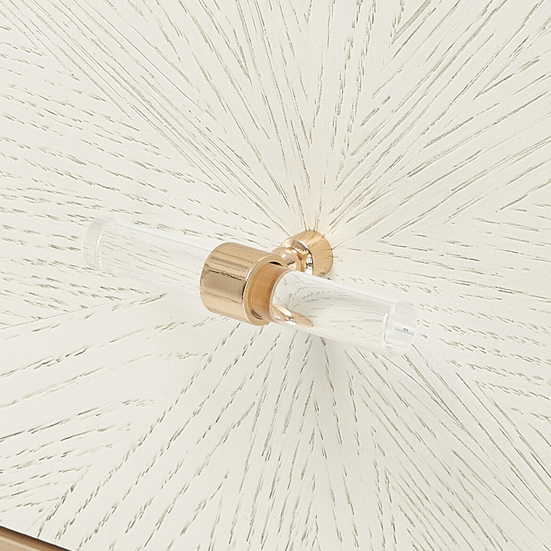- Five velvet lined drawers with self-closing glides and acrylic pulls