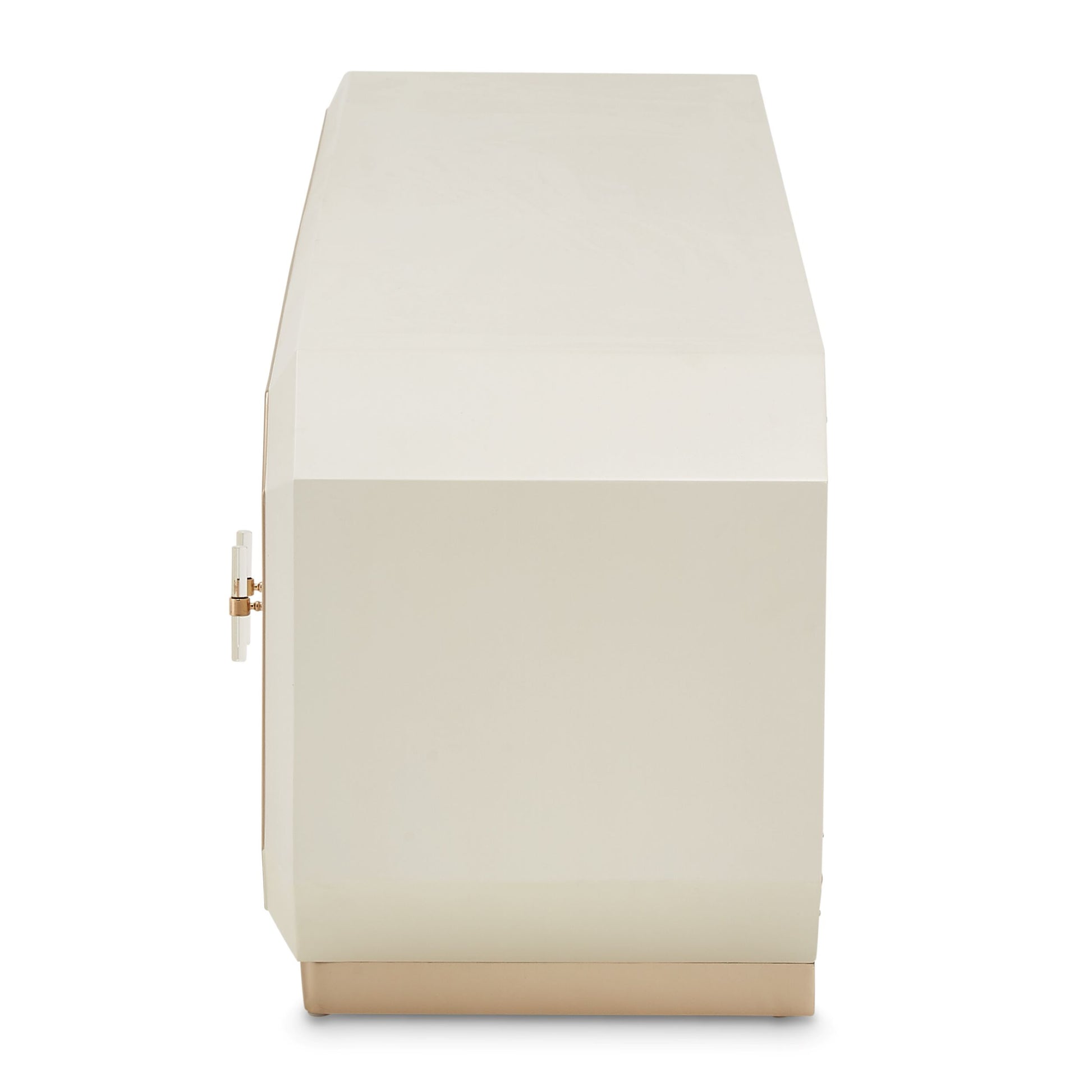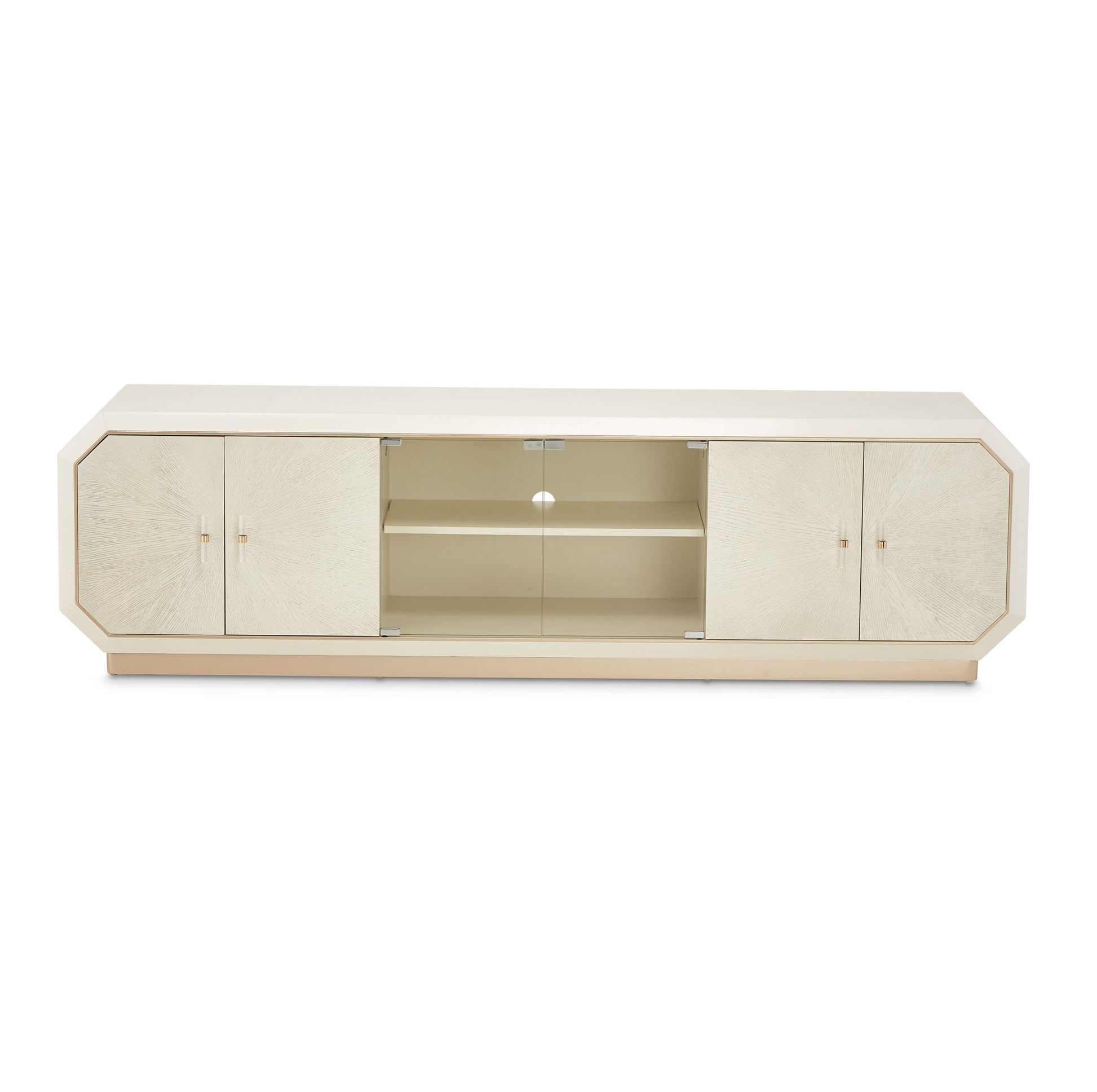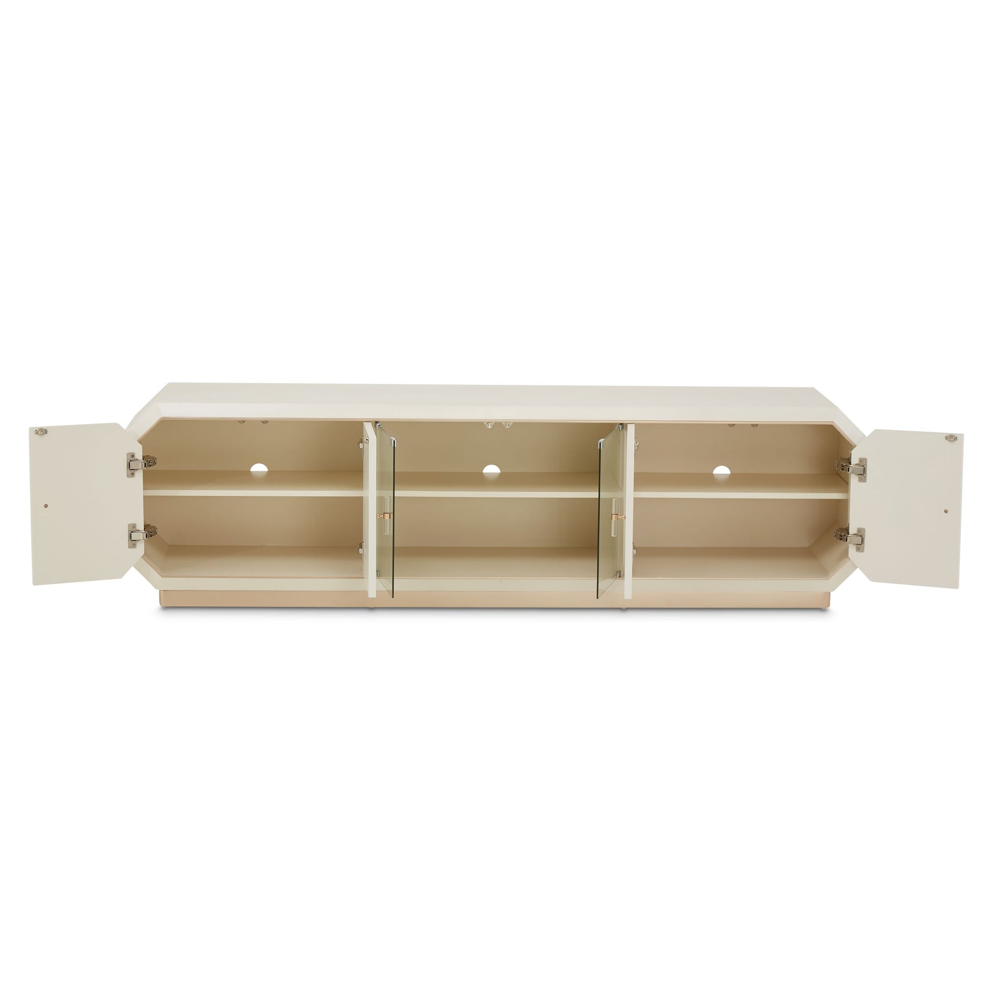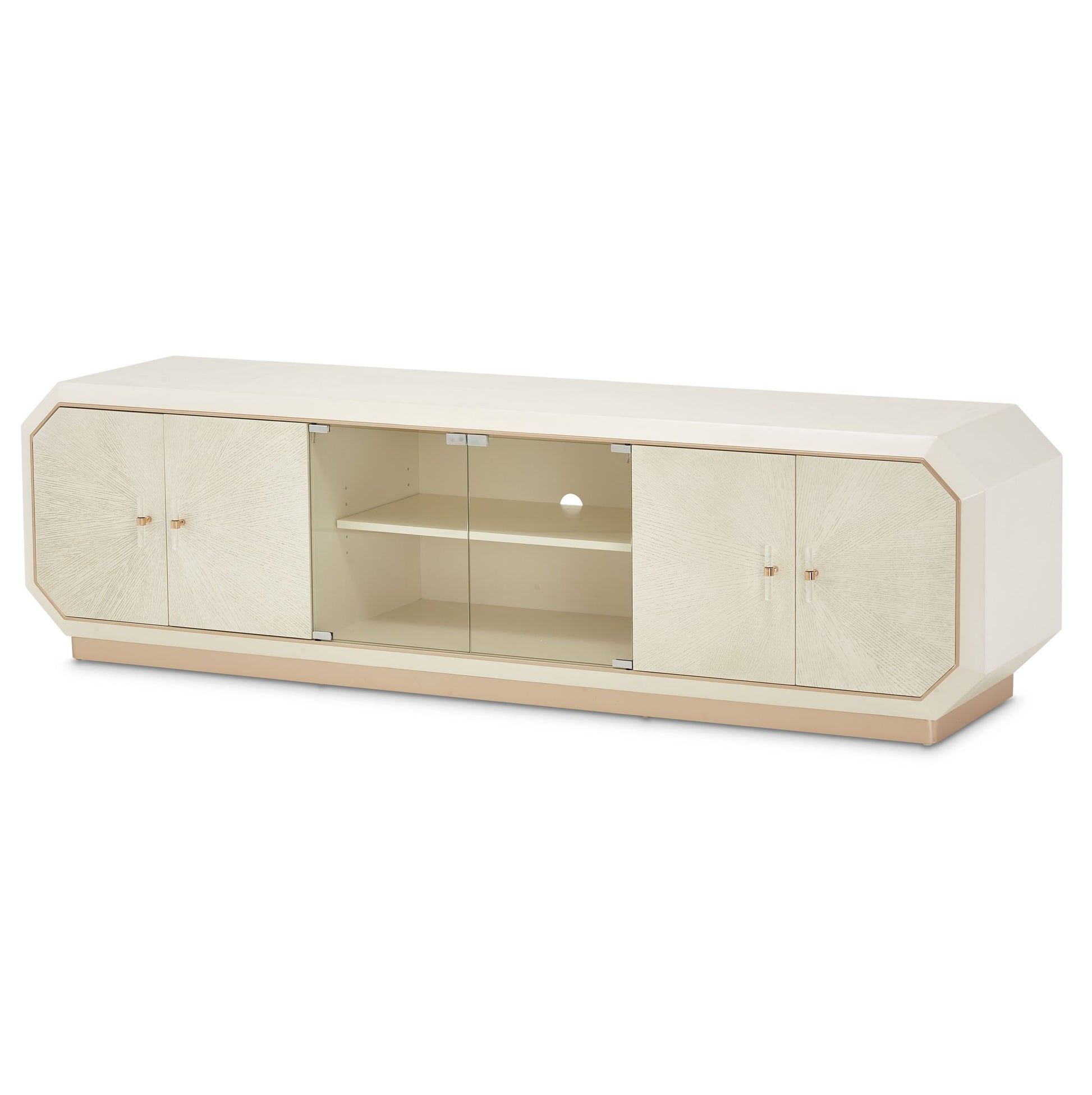 Entertain in style with the La Rachelle Media Cabinet! Streamline your space and organize your belongings behind the cabinet doors, while showcasing your best decor and media behind the glass!
