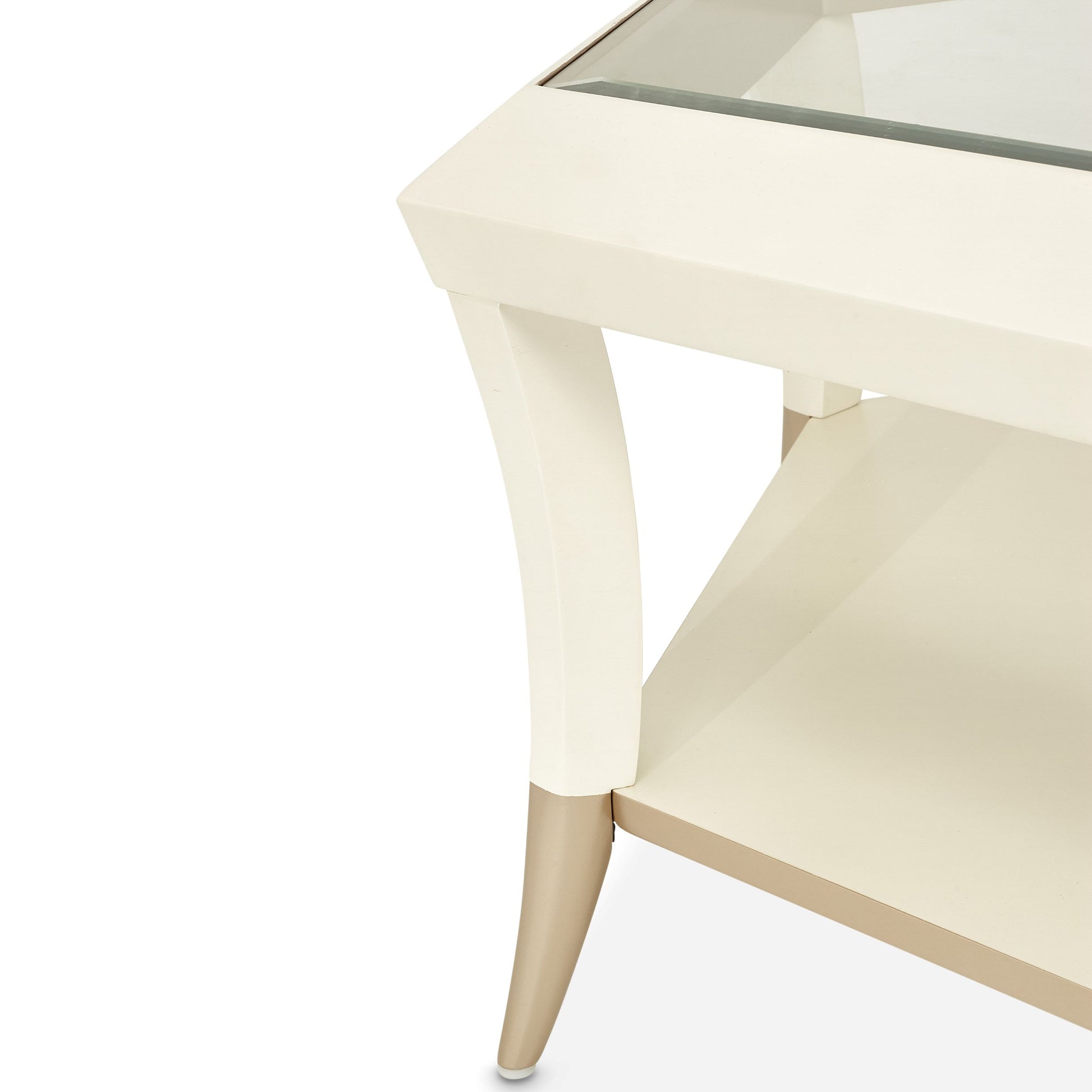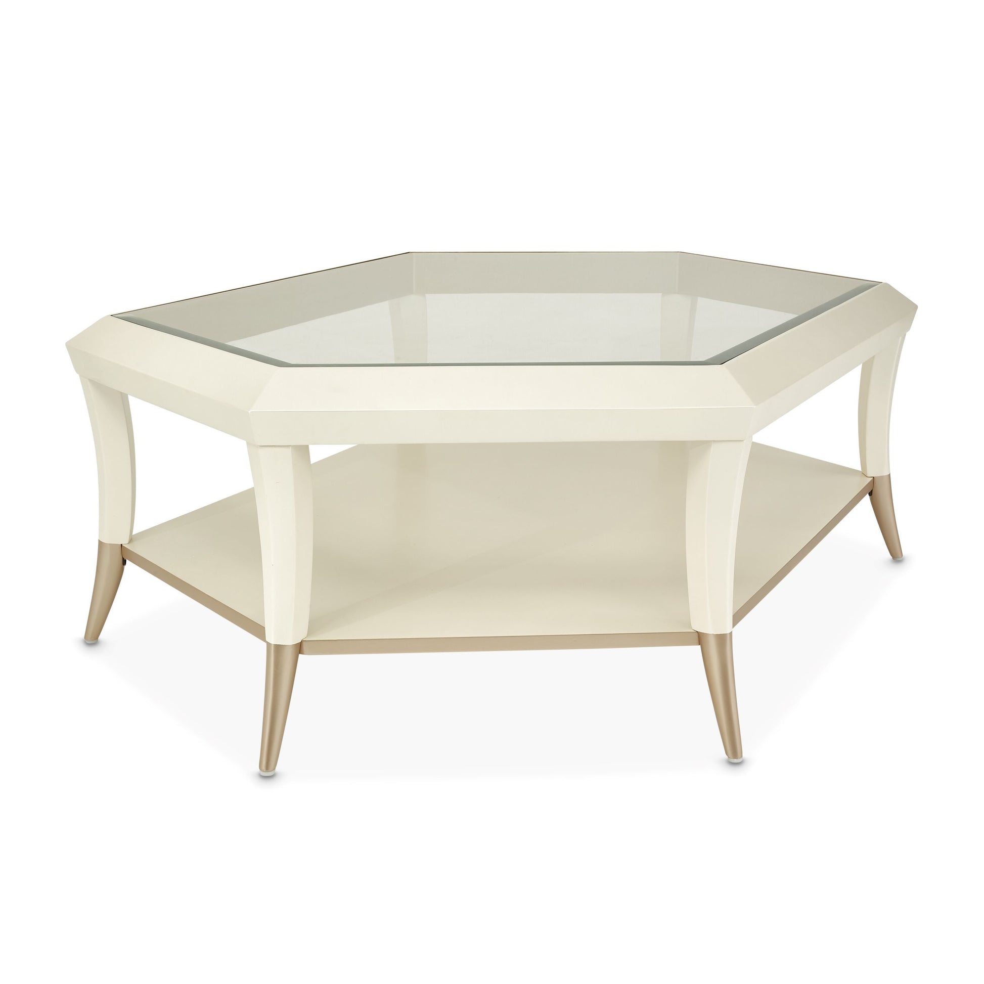 Show off your angles! The La Rachelle Hexagon Cocktail Table is cut into a gemstone shape with a pearly finish, Champagne accents, and the perfect style to elevate your living room look.