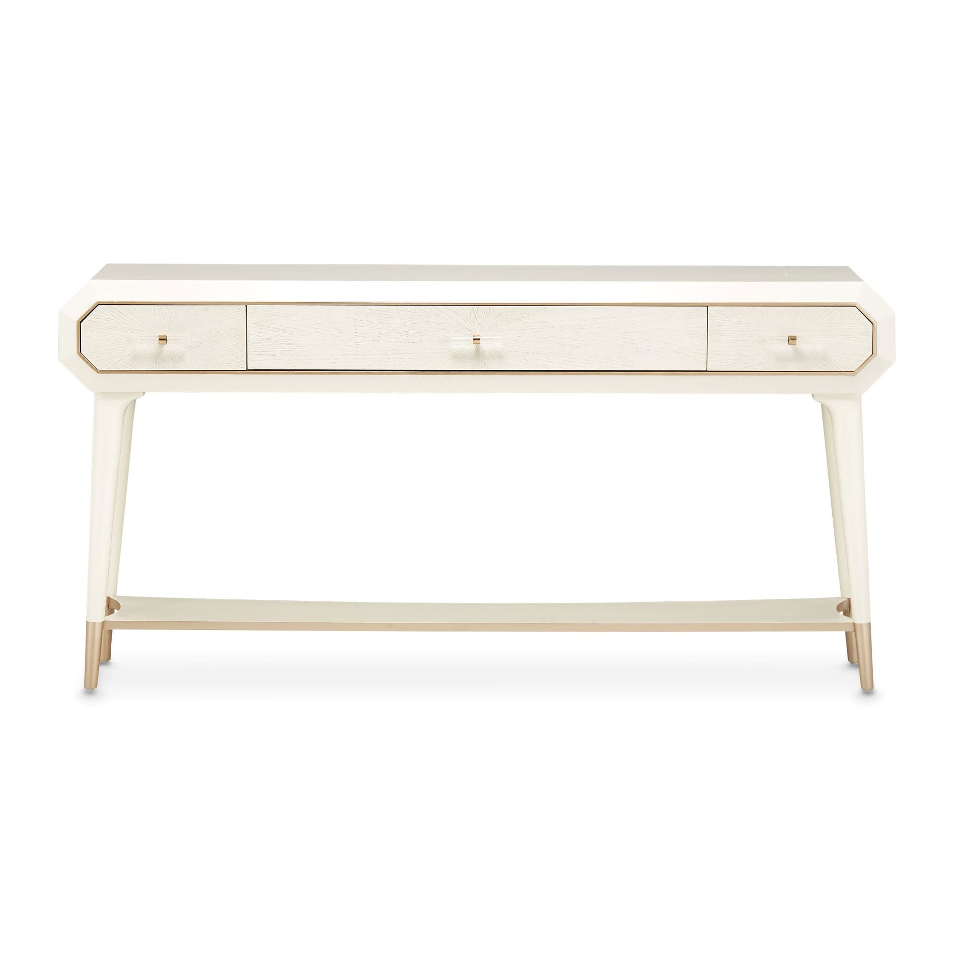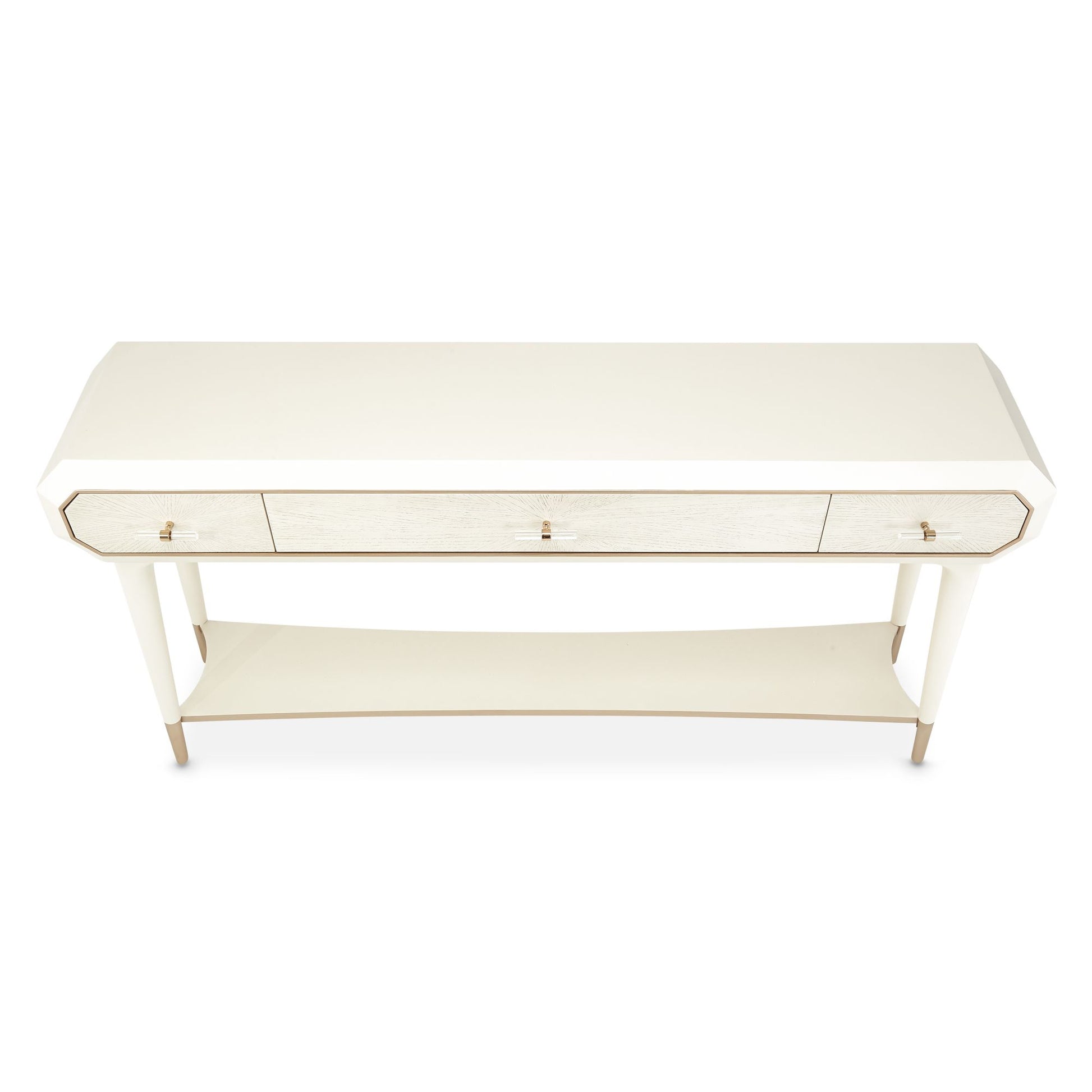 Create an eye-catching entryway with the La Rachelle Console Table. With tabletop and undertier space for decor, and drawers for convenient storage, this design is made for the elegantly modern home!
