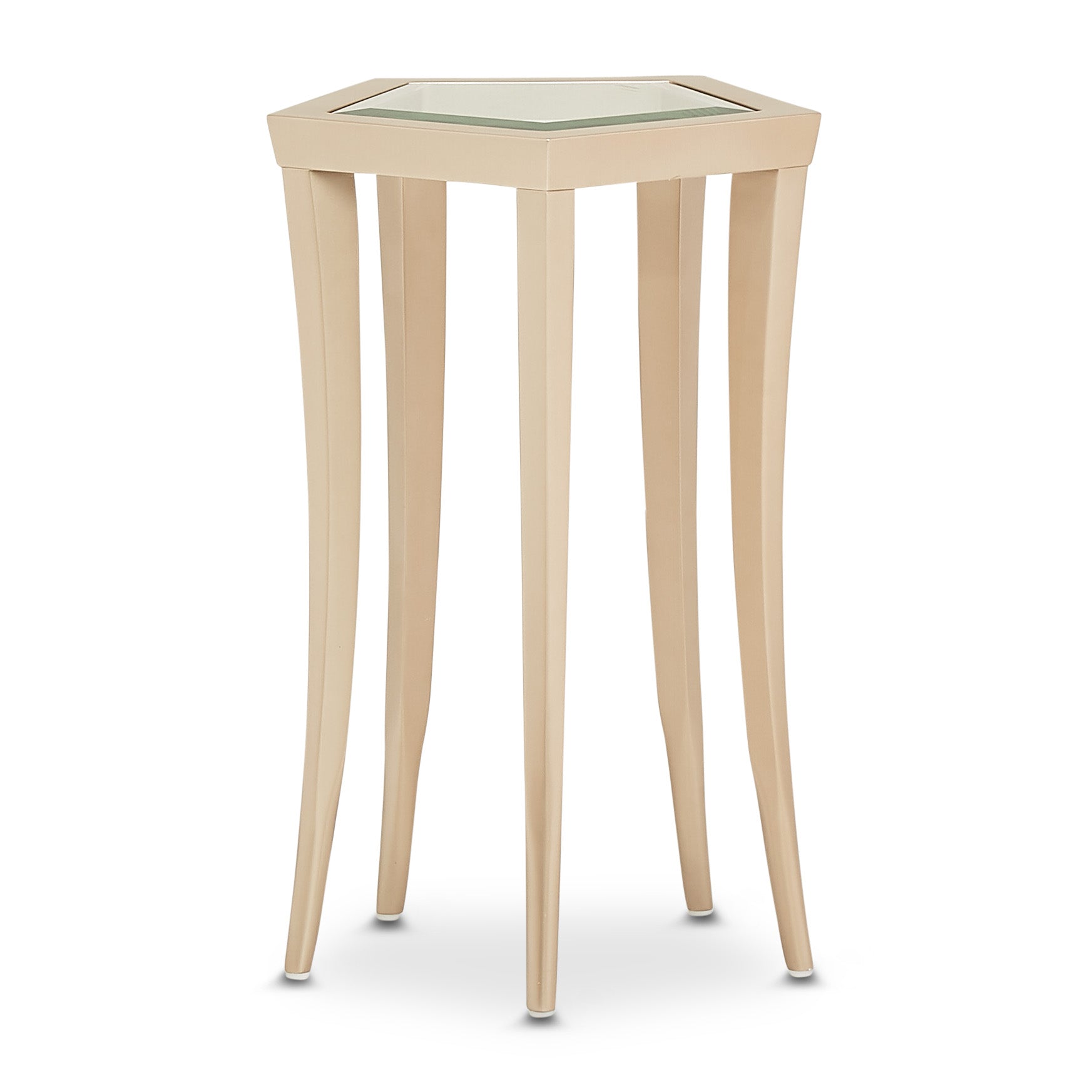- Pentagon glass tabletop is beveled