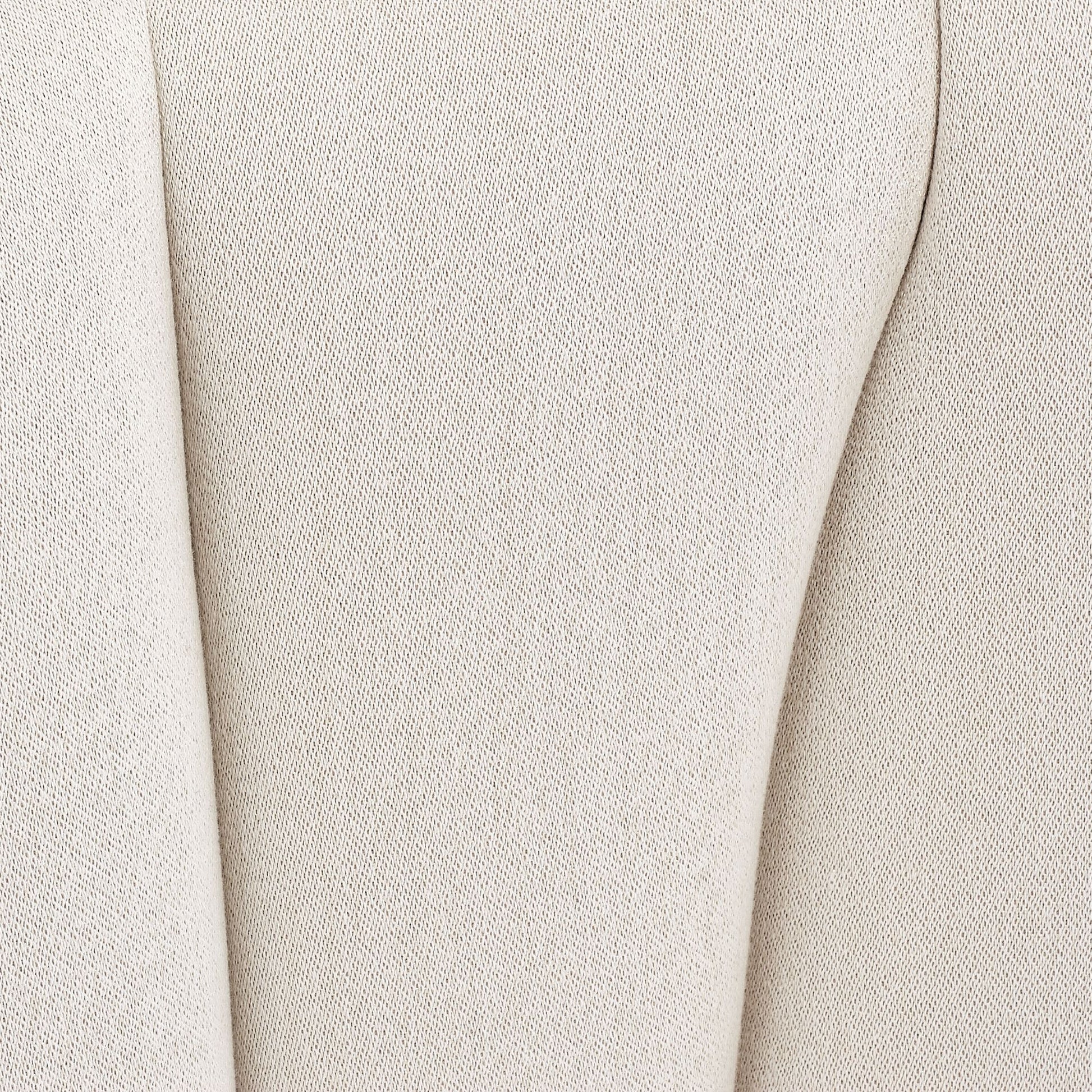 - Chair is upholstered in a woven shimmery fabric with vertical channeling on the back