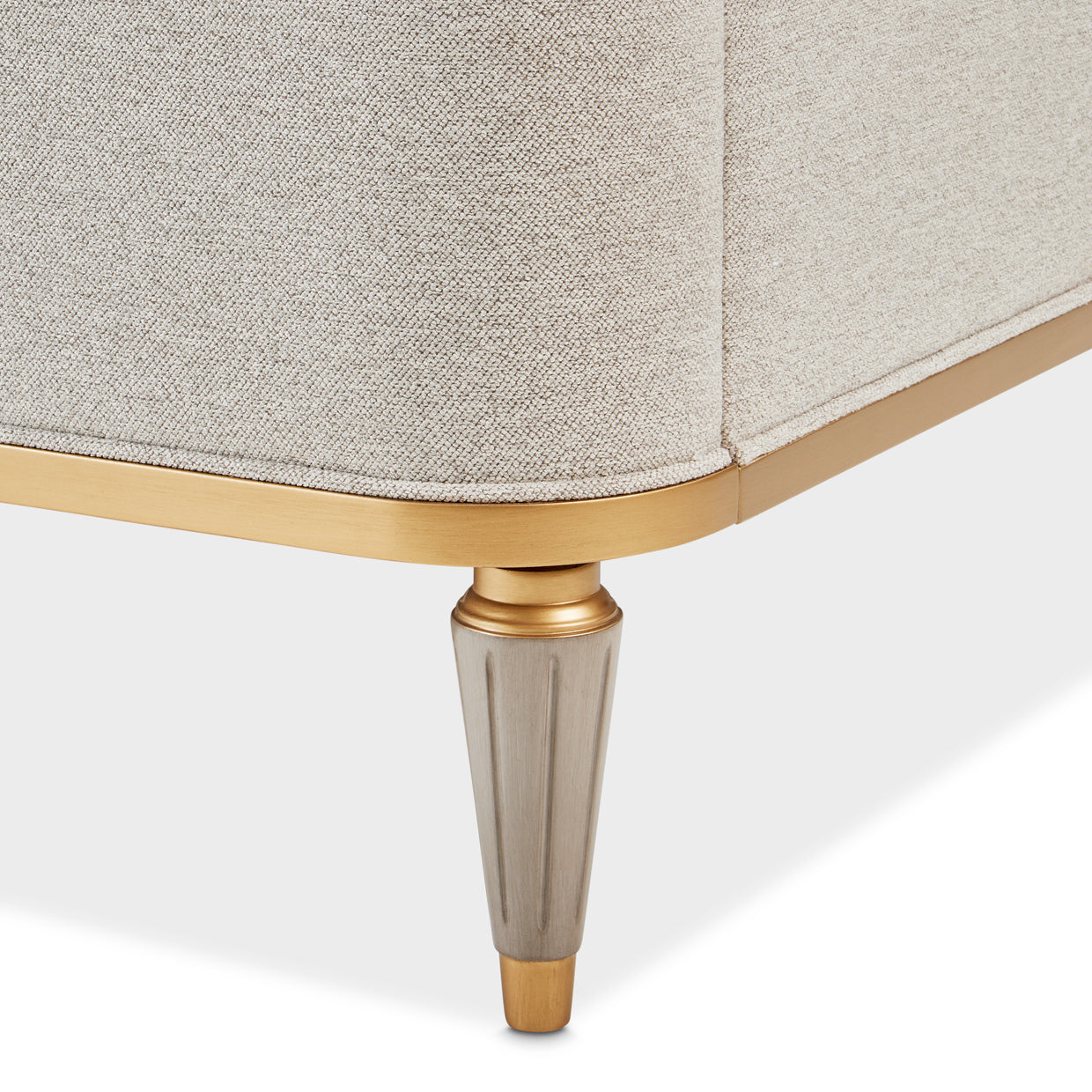 - Elegant tufting, gentle curves, and bronze trim make a statement of refined taste and sophistication.