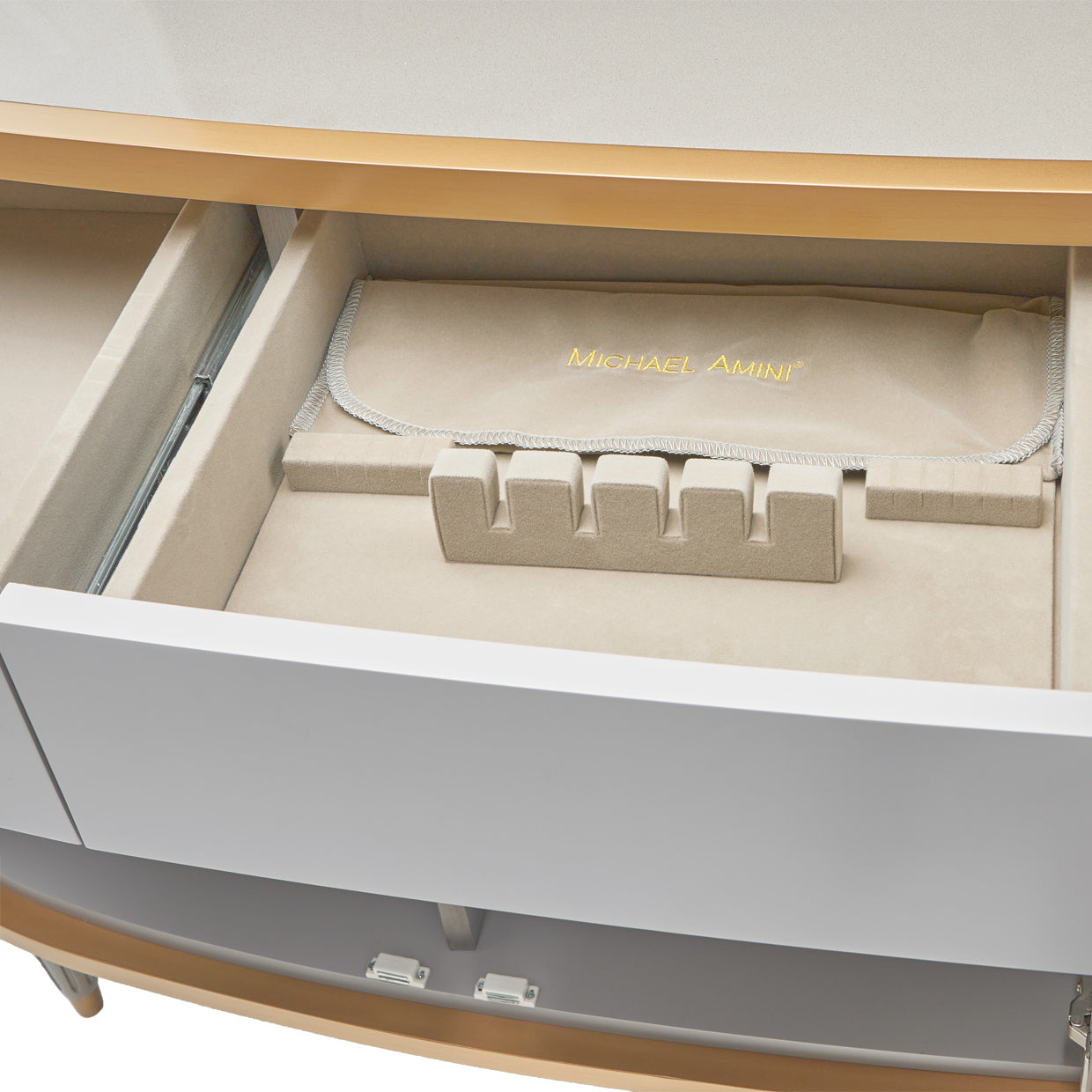 - Four velvet-lined interior drawers, perfect for storing fine silverware and delicate items