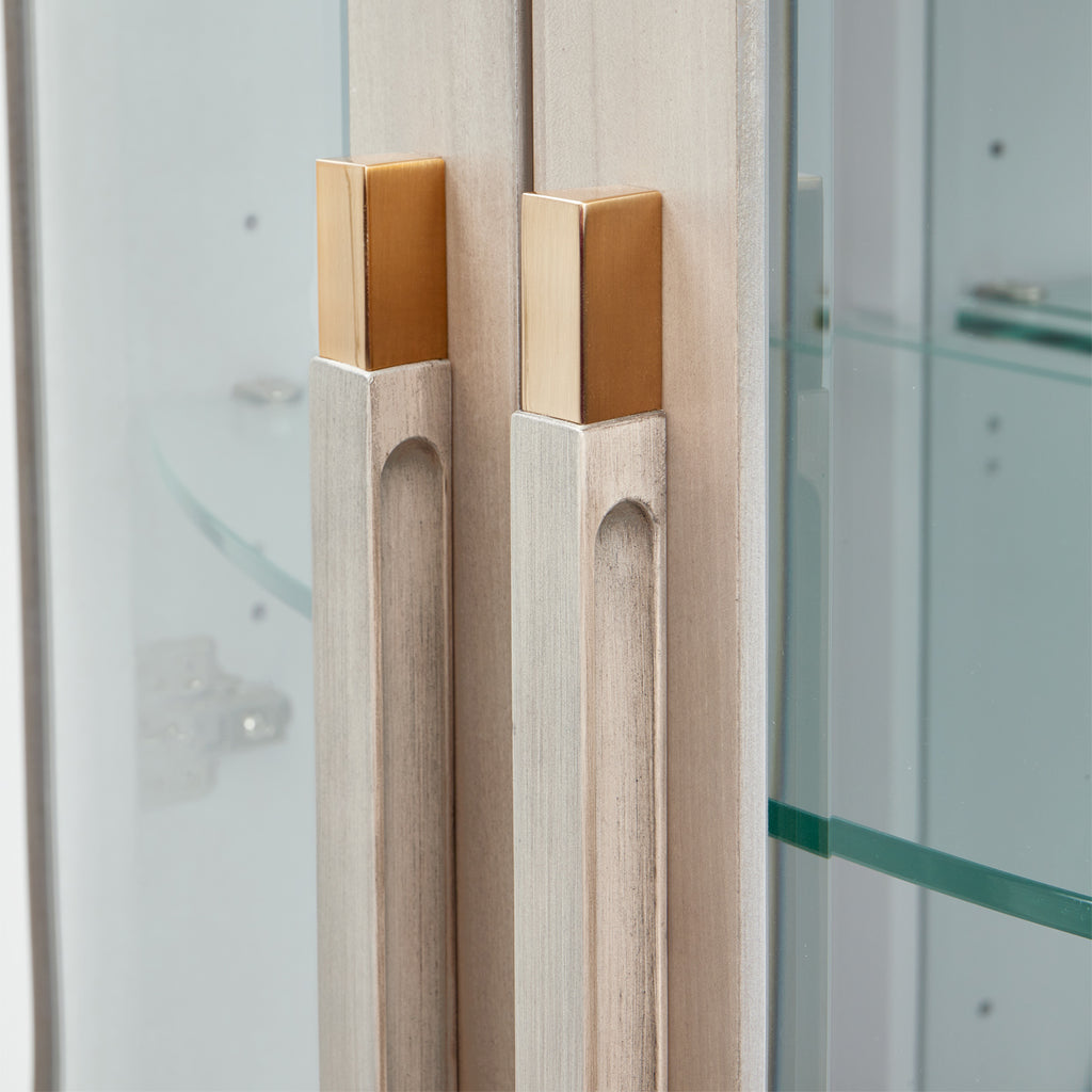 Celebrate the beauty of your cherished collectibles with the Saint Charles Display Cabinet, an exquisite blend of functionality and elegance. Illuminate your valuables with the subtle sophistication of built-in LED touch lighting, creating an inviting ambiance. The central glass panel of this stately cabinet ensures your items are the focal point, complemented by the serene Dove Gray finish that envelops the solid sides and sleek framework.