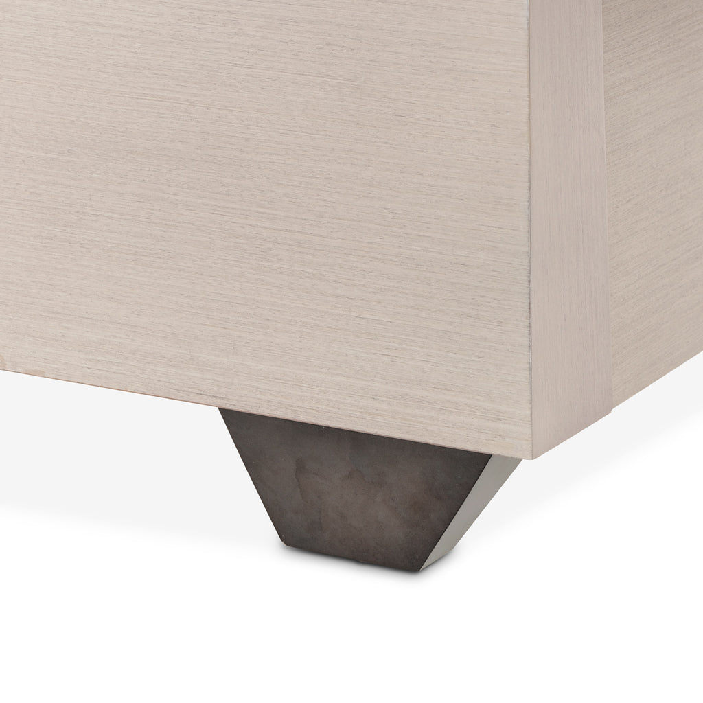 Sophisticated and serene, the Fantosini Upholstered Panel Bed brings a sense of balance and refinement to the bedroom. The geometric headboard features a modern silhouette with elegant angularity, wrapped in plush chenille upholstery in a cappuccino finish that harmonizes soft grays and natural tones. Framed in an oak veneer, the headboard is both structured and inviting. The sleek platform base echoes this refined trim, offering a continuous flow of style. Subtly built-in USB ports provide discreet functionality while maintaining the bed’s elevated aesthetic.