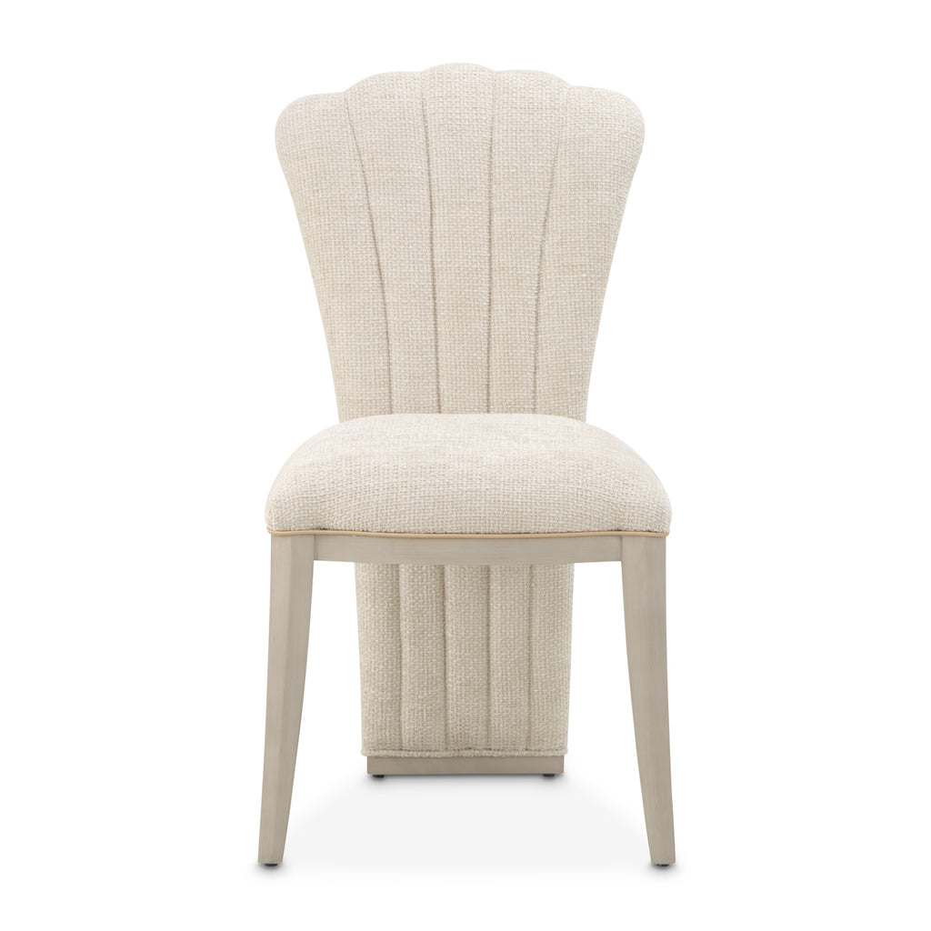 A curated masterpiece of modern elegance, the Fantosini 3-Piece Vanity Set blends sculptural design with refined finishes to create a truly glamorous dressing space. The vanity desk features a softly angled silhouette wrapped in oak veneers and crowned with a smoky contrasting top. Five soft-close drawers offer graceful storage for beauty essentials, while custom silver-finished hardware adds a distinctive, jewelry-like accent. The oval mirror, framed in radiant silver, echoes the sheen of the coordinating hardware, bringing depth and luminous sophistication. Paired with a shapely vanity chair upholstered in cappuccino chenille and accented with gold welting, this ensemble transforms any room into a sanctuary of style.