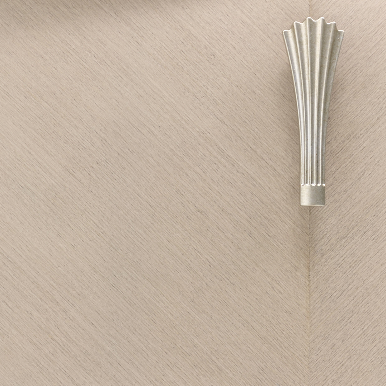 A vision of tailored elegance, the Fantosini Media Cabinet makes a statement in any refined living space. Its softly angled, architectural silhouette is wrapped in oak veneers and finished in a radiant silver mist, bringing a subtle shimmer to its sculpted lines. The contrasting top offers depth with a smooth, smoky tone that draws the eye. Inside, a combination of fixed and adjustable shelving offers versatile storage solutions, while the expansive surface is perfect for supporting televisions up to 88 inches or showcasing your luxe décor.
