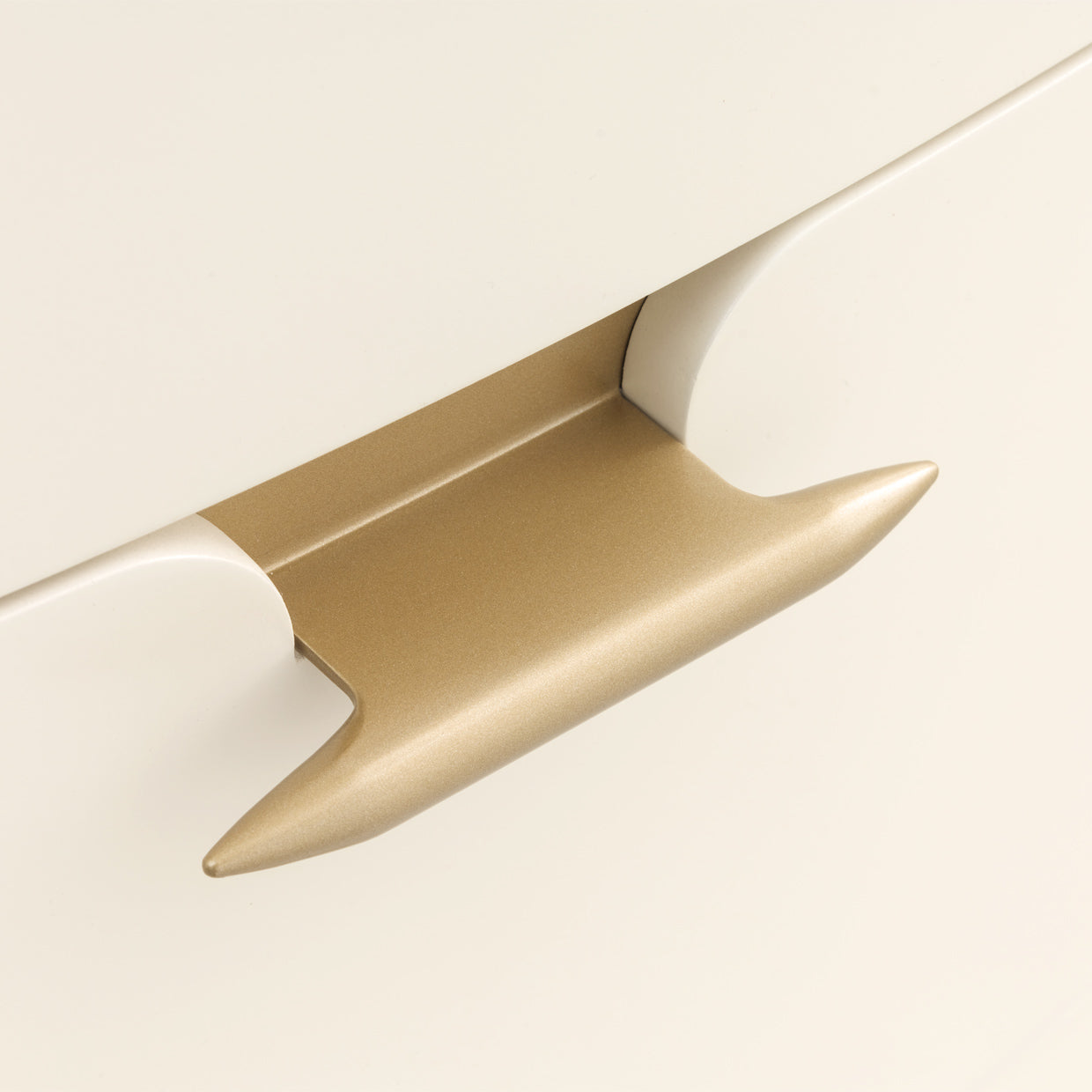 - Gold Metal Drawer Pulls – Sleek and modern, creating a polished focal point on each drawer front.