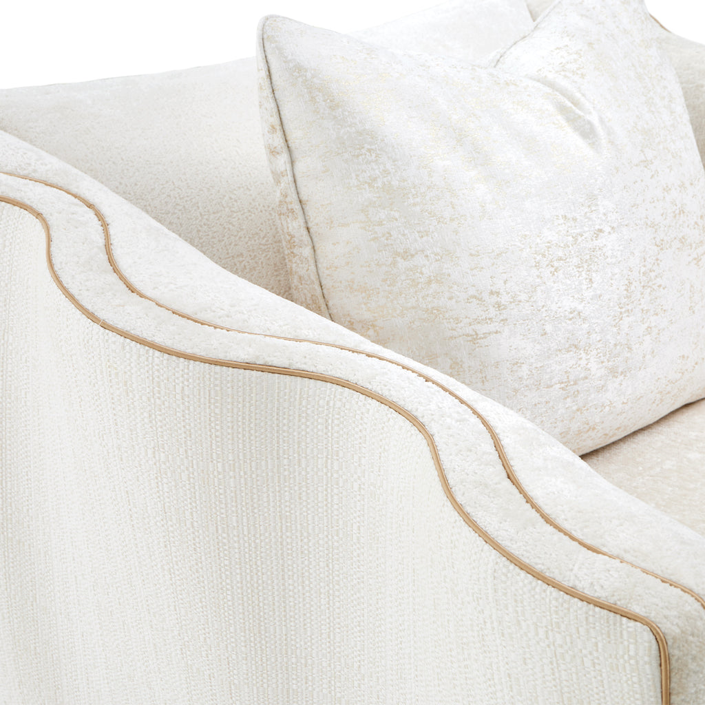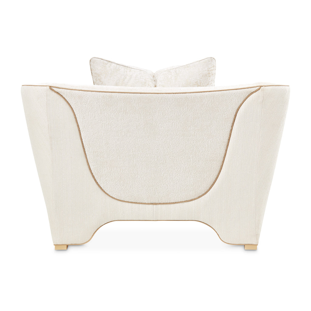 Discover the perfect blend of grace and comfort with the La Terrazza Matching Chair, offering a truly luxurious seating experience. Its elegantly curved arms showcase signature undulating edges, creating a visual rhythm that flows throughout the piece. The back panel features tailored piping and fluid curves, making this chair stunning from every angle. Inside, you'll find a plush, jacquard chenille, while the exterior boasts a tactile, woven fabric. This chair creates a cocoon of comfort and style.