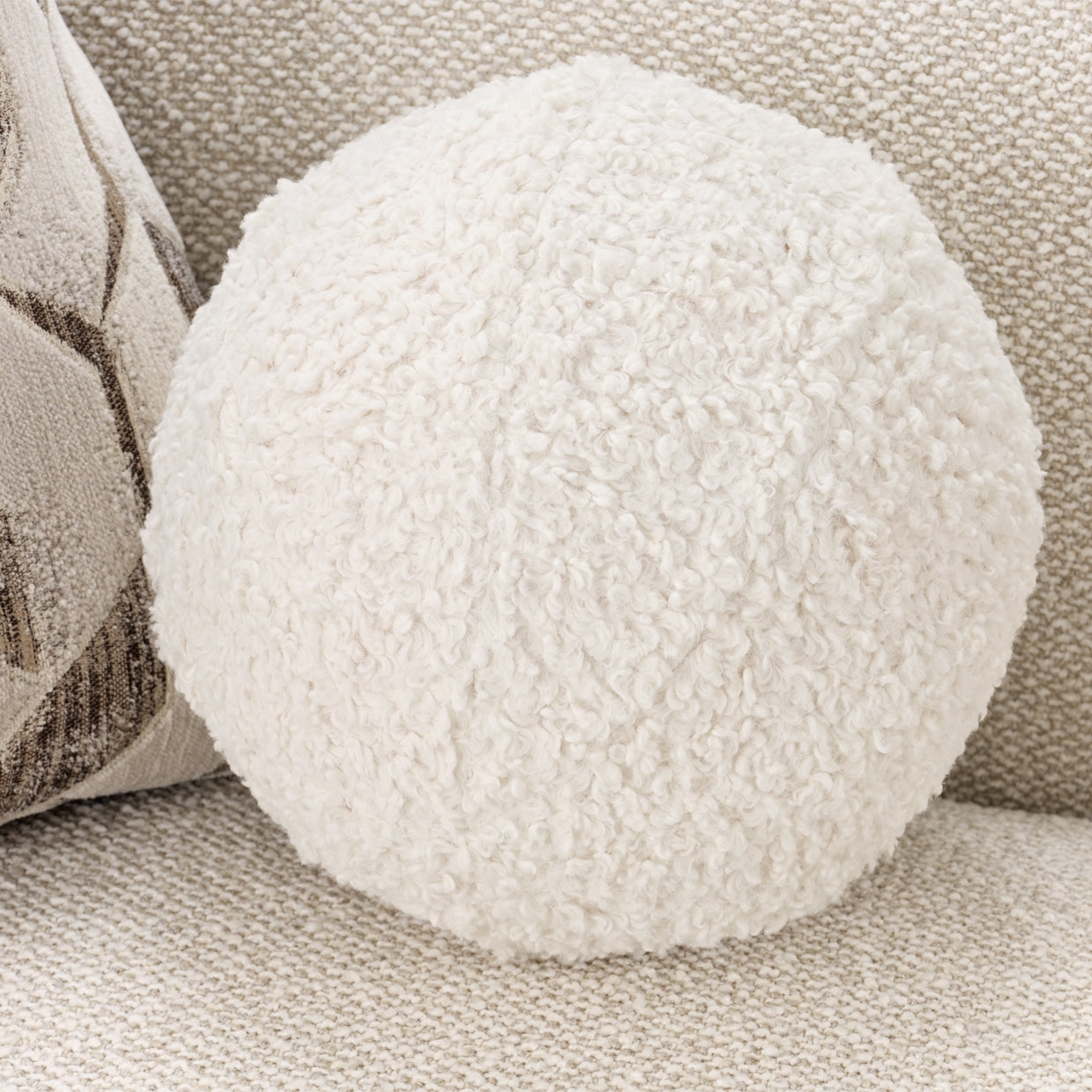 - Coordinated Accent Pillows: Two chenille jacquard pillows are complemented by a round faux-sherpa pillow, offering a plush, layered aesthetic.