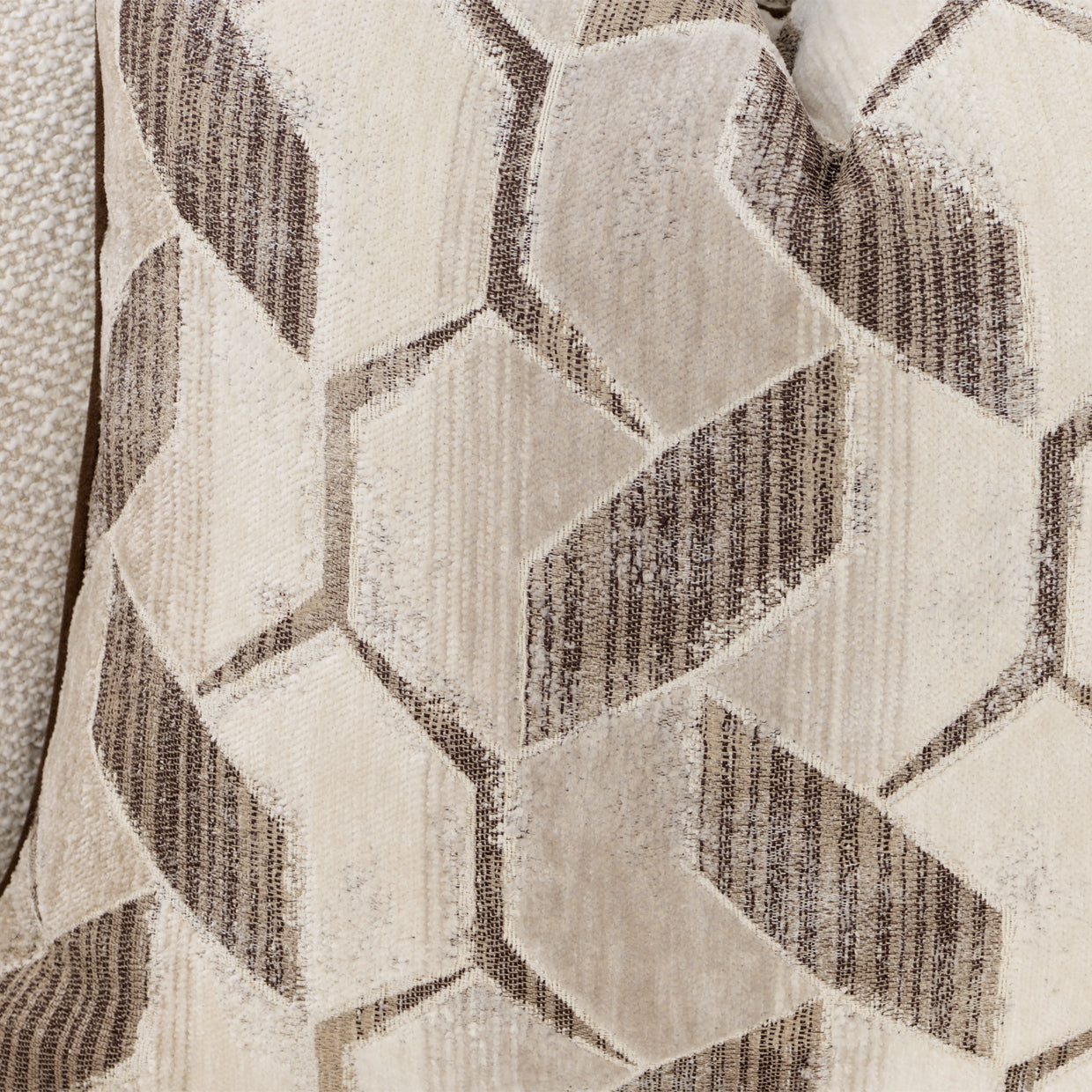 - Textural Upholstery: Woven chunky fabric with multi-hued yarns in a natural hue for a sophisticated, dimensional look.