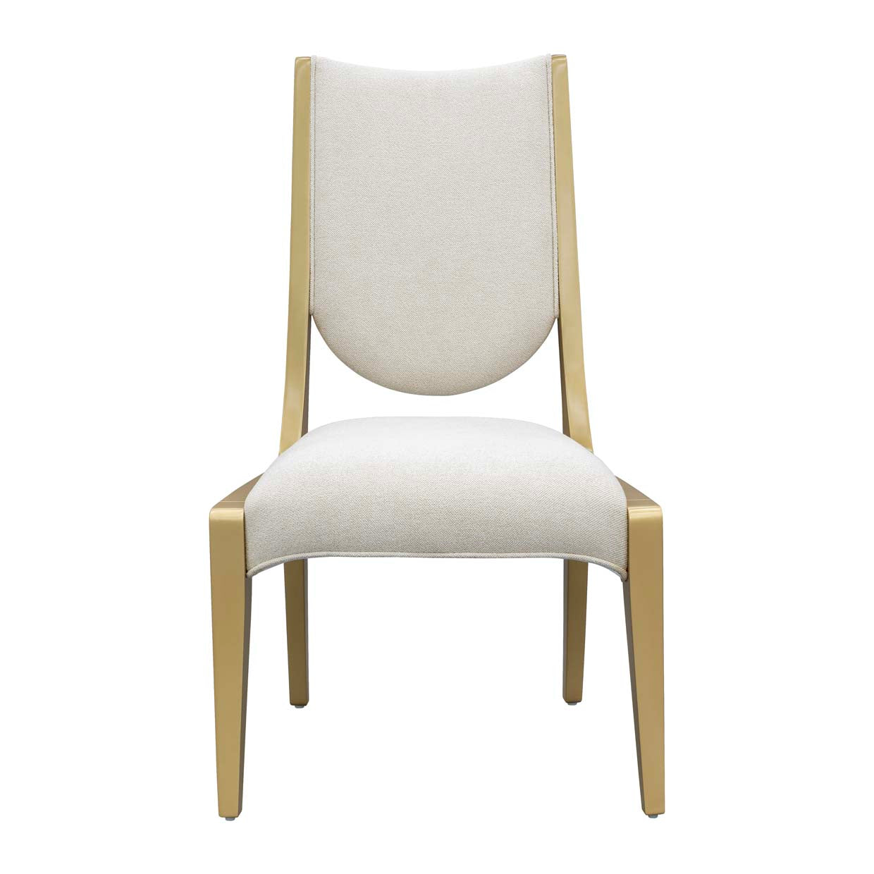 Graceful and refined, the Scotts Square Dining Side Chair brings modern sophistication to your dining experience. Upholstered in a plush chenille fabric in an understated cornsilk hue, it offers an invitingly soft texture with a luminous presence. The sculpted frame, crafted in a radiant gold finish with solid rubberwood legs, adds a stunning contrast of warmth and glamour. A gold metal and mother of pearl accent graces the back, adding a luminous finishing detail that elevates any dining setting.