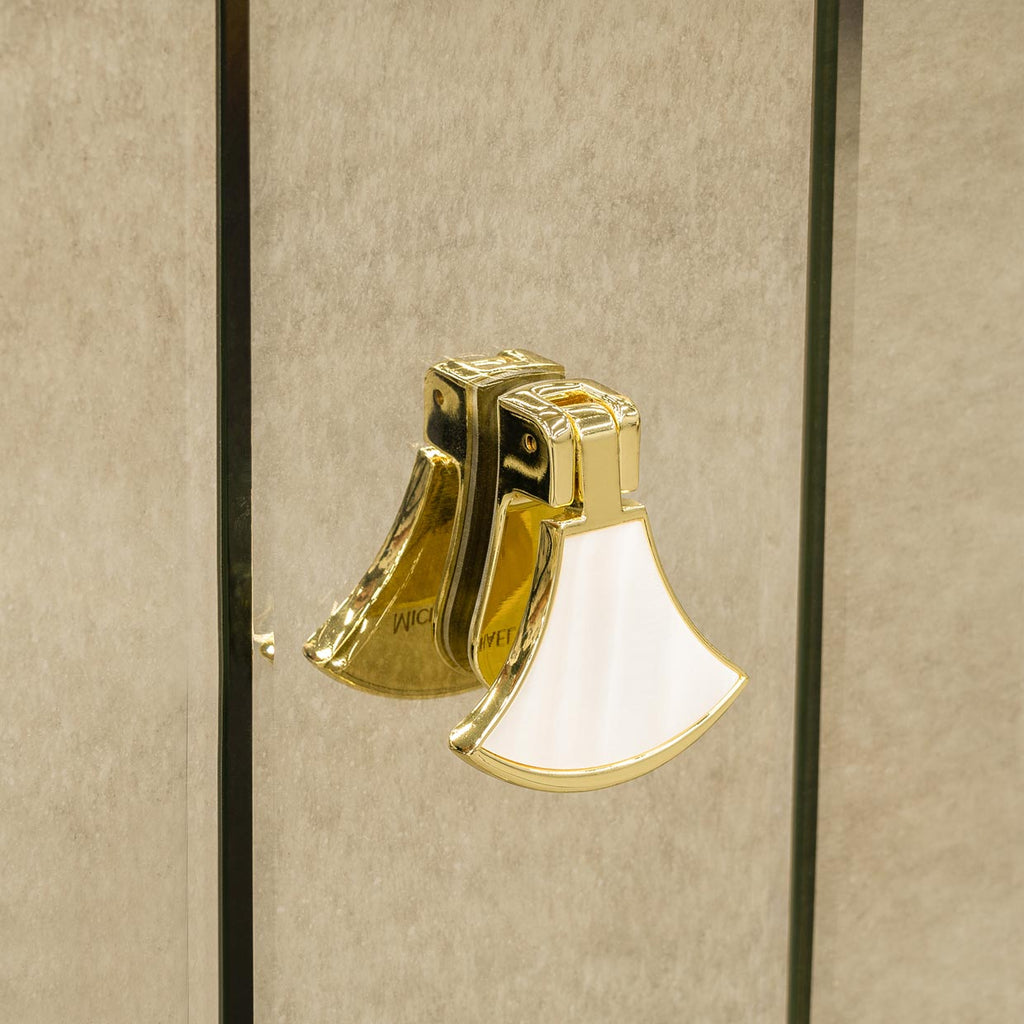 Grace your bedroom with the luminous beauty of the Scotts Square Nightstand. Wrapped in a soft champagne finish with gleaming gold trim, this design captures the perfect balance of sophistication and glamour. The antique mirrored drawer fronts shimmer with beveled elegance, while the onyx-look top offers a radiant surface for your most cherished accents. Soft-close, velvet-lined drawers provide a sumptuous storage experience, and an integrated LED light within the top drawer brings an added touch of brilliance.