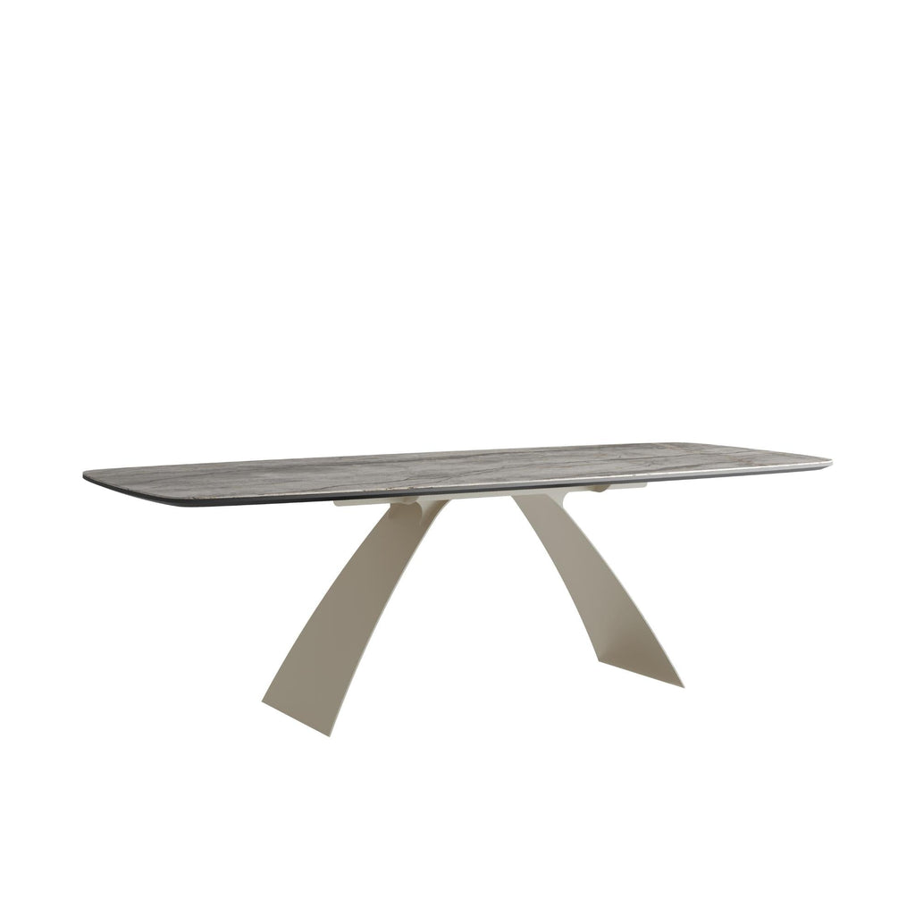 The Bridge Fixed Dining Table brings modern minimalism and refined Italian craftsmanship into a dining room. Its smooth ceramic top is available in premium finishes (Pampa, Onice Nero, Onice Avorio, and Silver Root Matte), allowing you to choose a surface that fits your décor - from understated chic to bold contrast. The base is offered in anthracite or kalkbeige finish, giving the table a sturdy foundation and a sleek, architectural look.