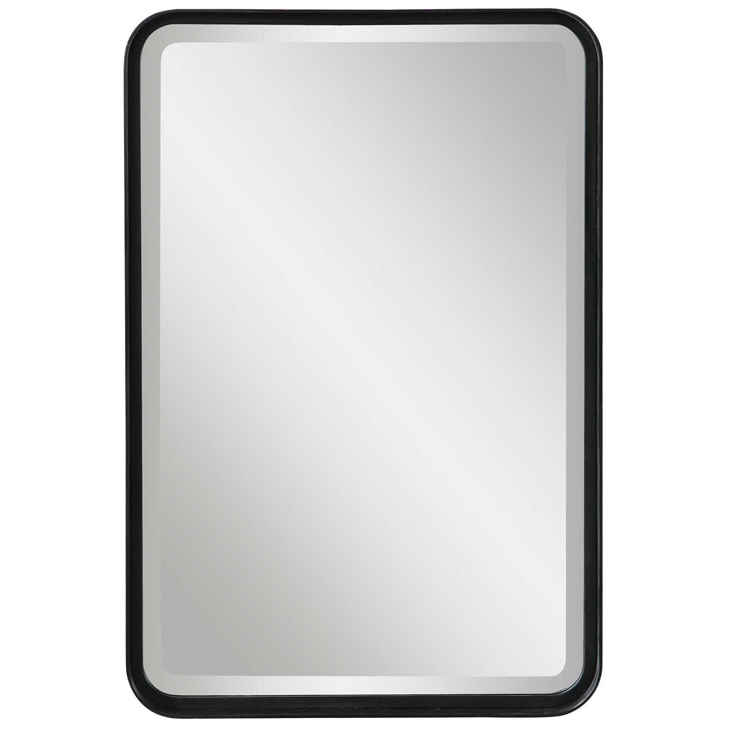 Versatile In Design, This Vanity Mirror Is Constructed From A Forged Metal Strap Finished In Satin Black. The Mirror Has A 1 1/4" Bevel And May Be Hung Horizontal Or Vertical.