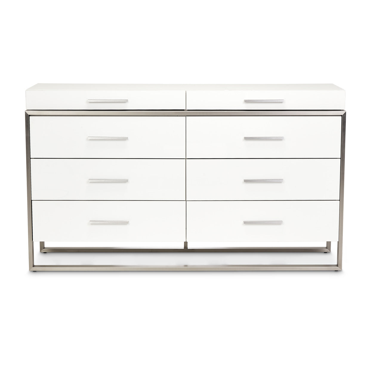 Complete the look! The Marquee Dresser will change the way you look at bedroom design. With tiered top drawers, a beautiful mix of matte and gloss lacquer finishes, and brushed stainless steel, this pair is exactly what you want in your contemporary living space.