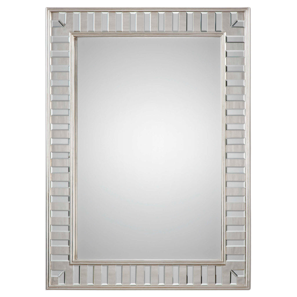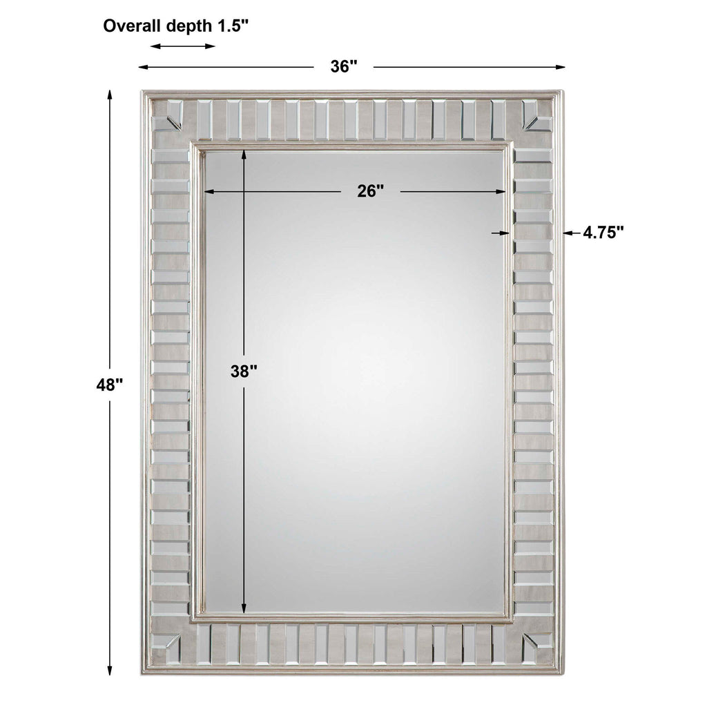 Sleek And Elegant Finishing Touch For Any Room. The Solid Pine Frame Features A Lightly Antiqued Silver Leaf Finish Decorated With Small Beveled Mirrors. Hangs Horizontally And Vertically.