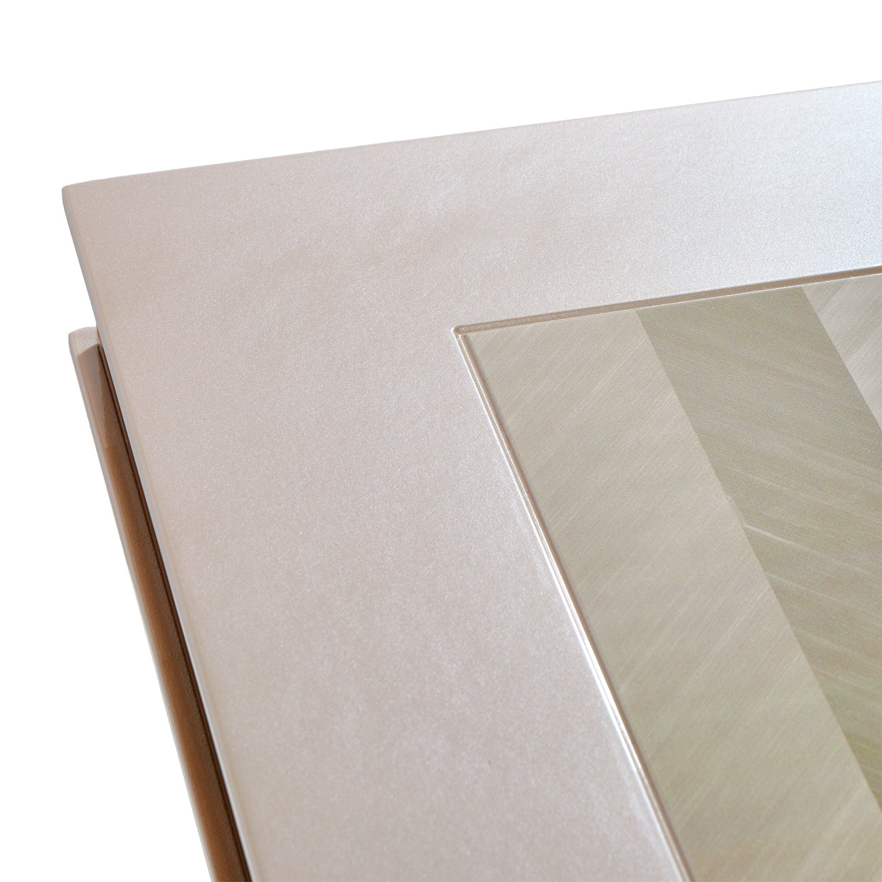 - Shimmer ivory high-gloss lacquer finish ensures durability and a radiant sheen that enhances the table's luxurious feel.
