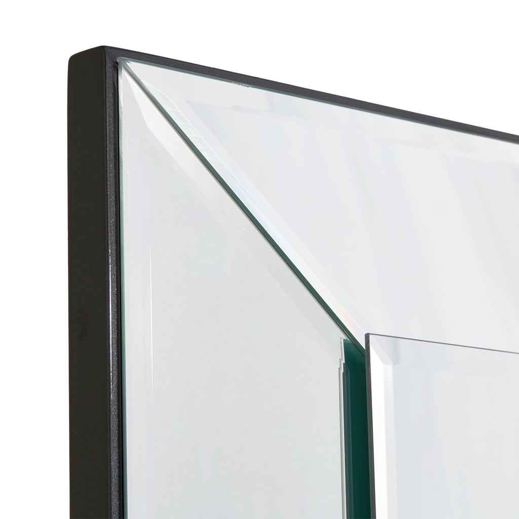 The Carmella Wall Mirror brings a touch of understated luxury to any space. Its all-mirrored finish reflects light beautifully, while the outer trim, finished in a rich charcoal hue with a hint of shimmer, adds modern elegance. Beveled glass enhances depth and refinement, making this sleek silhouette a perfect fit for any interior.