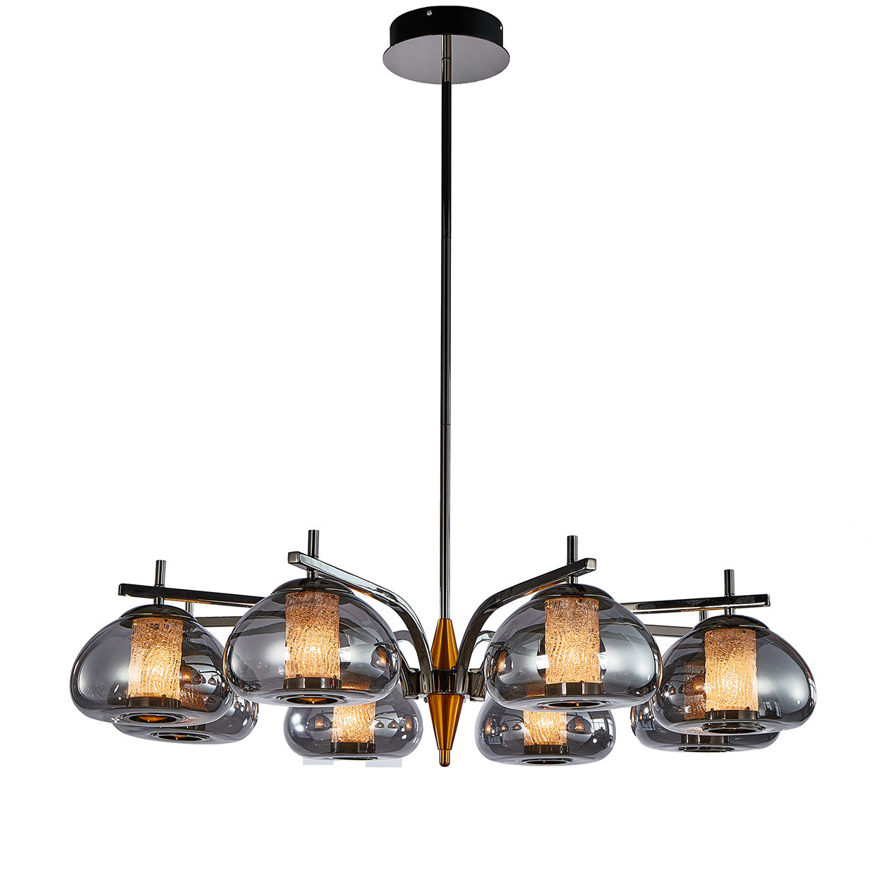 Commanding yet graceful, the Ember 8-Light Chandelier is a radiant centerpiece designed to anchor grand spaces with contemporary warmth. Eight smoked glass shades extend from a central matte black and bronze hub, forming a symmetrical silhouette that is both architectural and fluid. Each dome encases a hand-textured amber diffuser, casting a warm, ambient light that shimmers softly through layered glass. With its sculptural arms and refined contrast in materials, Ember offers a modern take on mid-century styling—elevating dining rooms, great rooms, and open living spaces with polished drama.