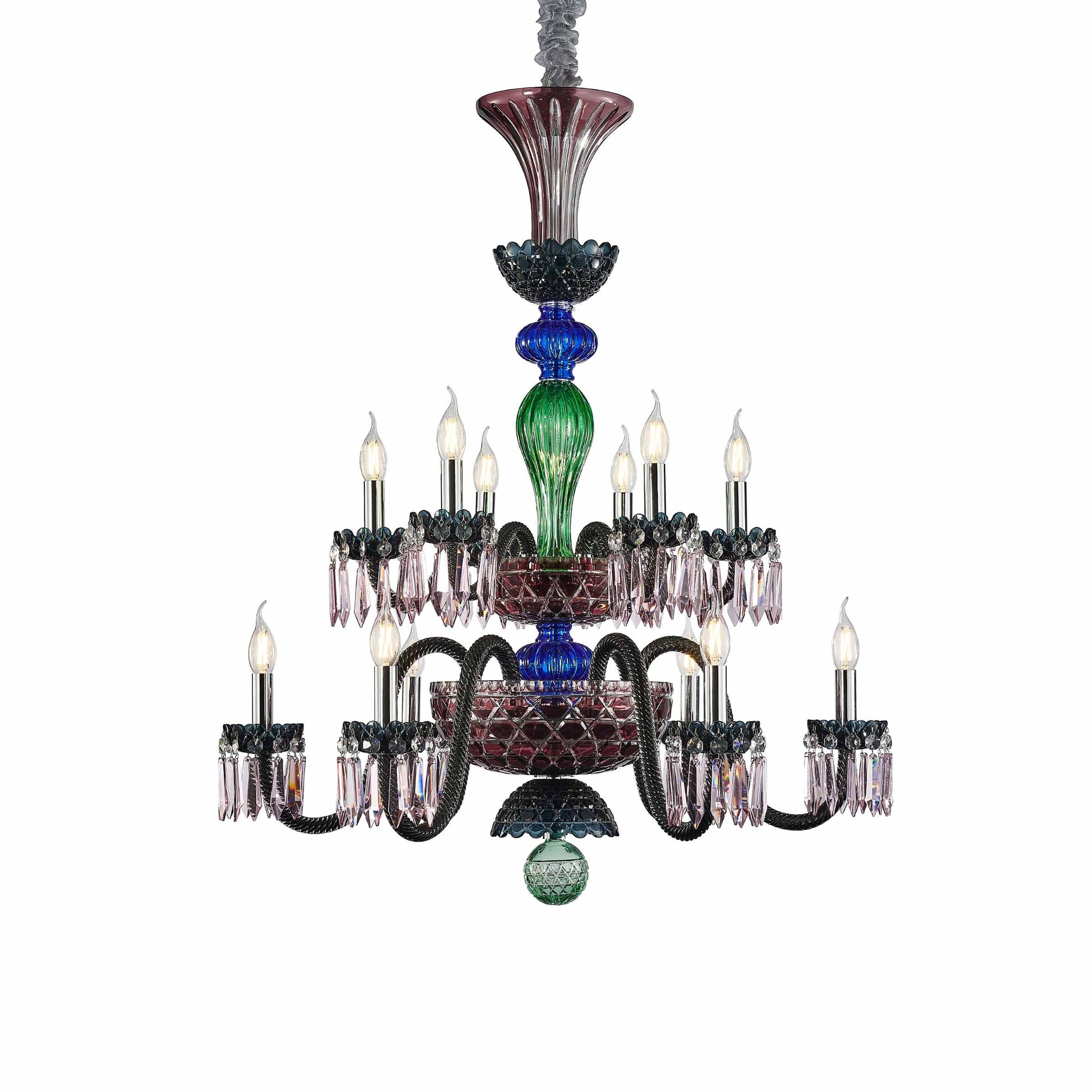 - Jewel-Toned Glass Column: A rich interplay of emerald, sapphire, and garnet glass adds regal color and dimension, inspired by Venetian glassmaking traditions.