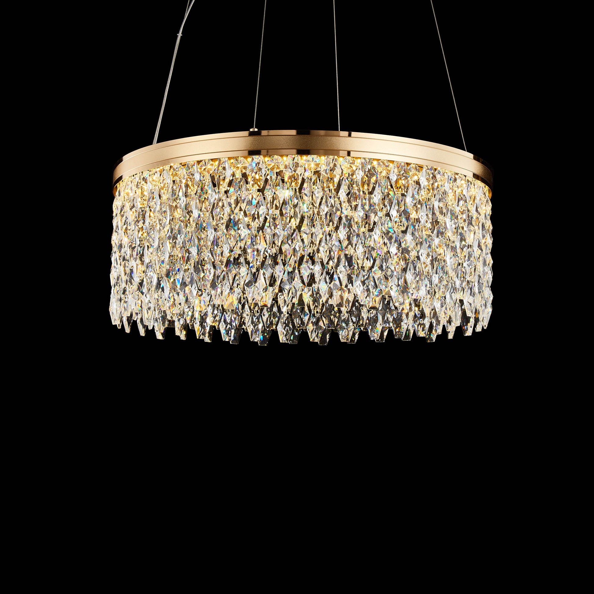 The Orlena LED Chandelier is a dazzling expression of golden opulence. Named for “orâ€, the French word for gold, Orlena envelops your home in regal brilliance. A halo of finely sculpted hexagonal crystals cascades in lavish strands from a lustrous champagne gold frame, catching every glimmer of light like a crown of diamonds. Inset LED illumination preserves the silhouette’s purity while creating a radiant, glowing aura. Suspended as if floating, Orlena is a breathtaking statement of refinement, sophistication, and pure glamour.