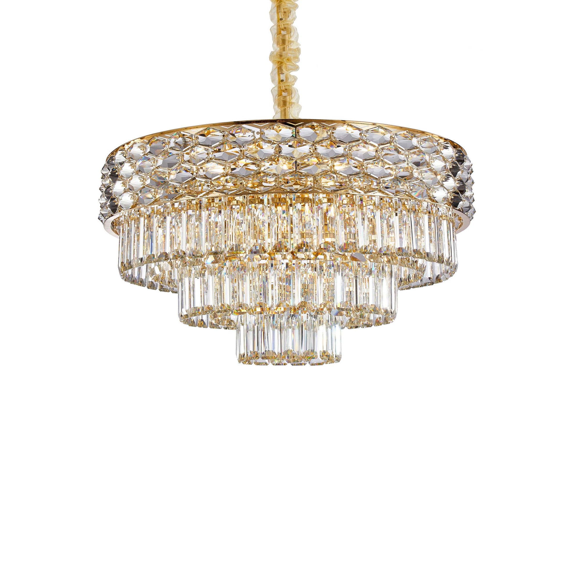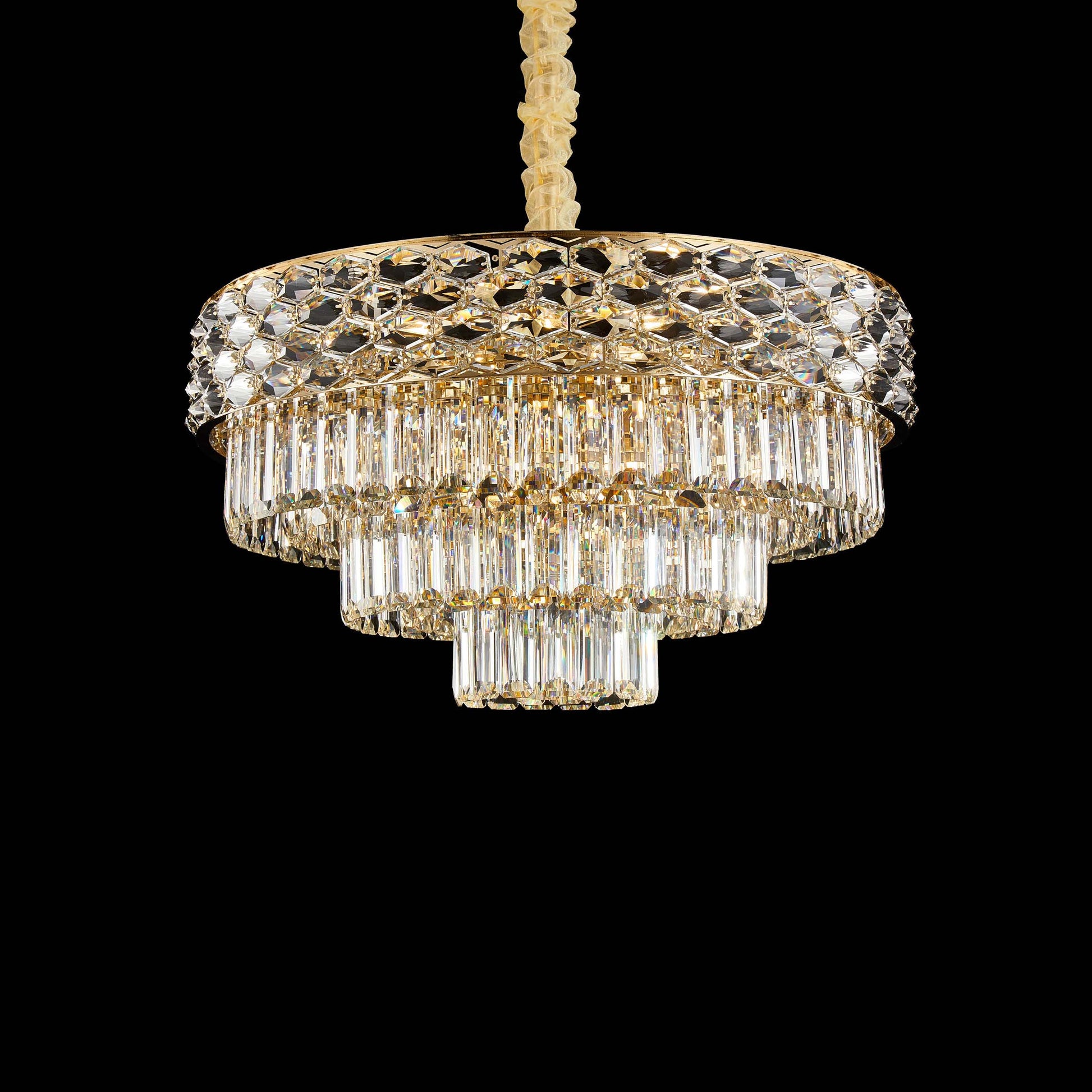 - Tiered Brilliance in K9 Crystal: Three cascading tiers of high-grade K9 crystal prisms catch and reflect light in dazzling harmony, creating an ambiance of pure luxury.