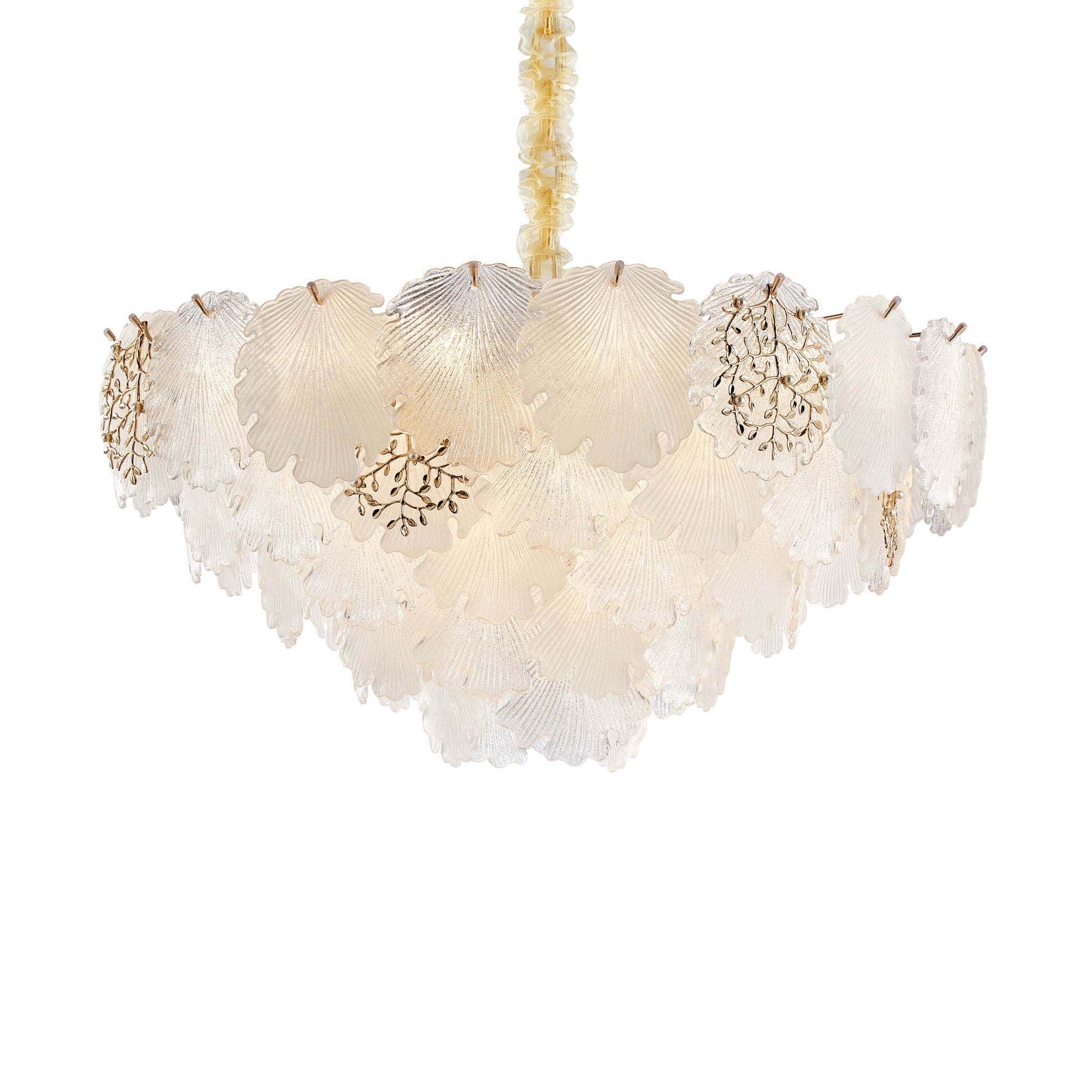 - Frosted Glass Shells: Each sculptural shell is hand-formed with intricate ridging and softly frosted for a luminous, ethereal finish.