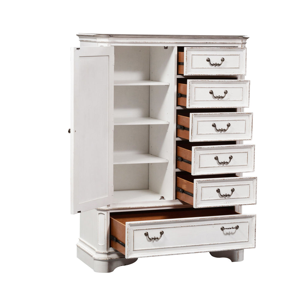 Blending of European influences makes Magnolia Manor a truly unique style for any living space. Warm antique finishes and artistic distressing along with grand scale a group to be passed to generations.