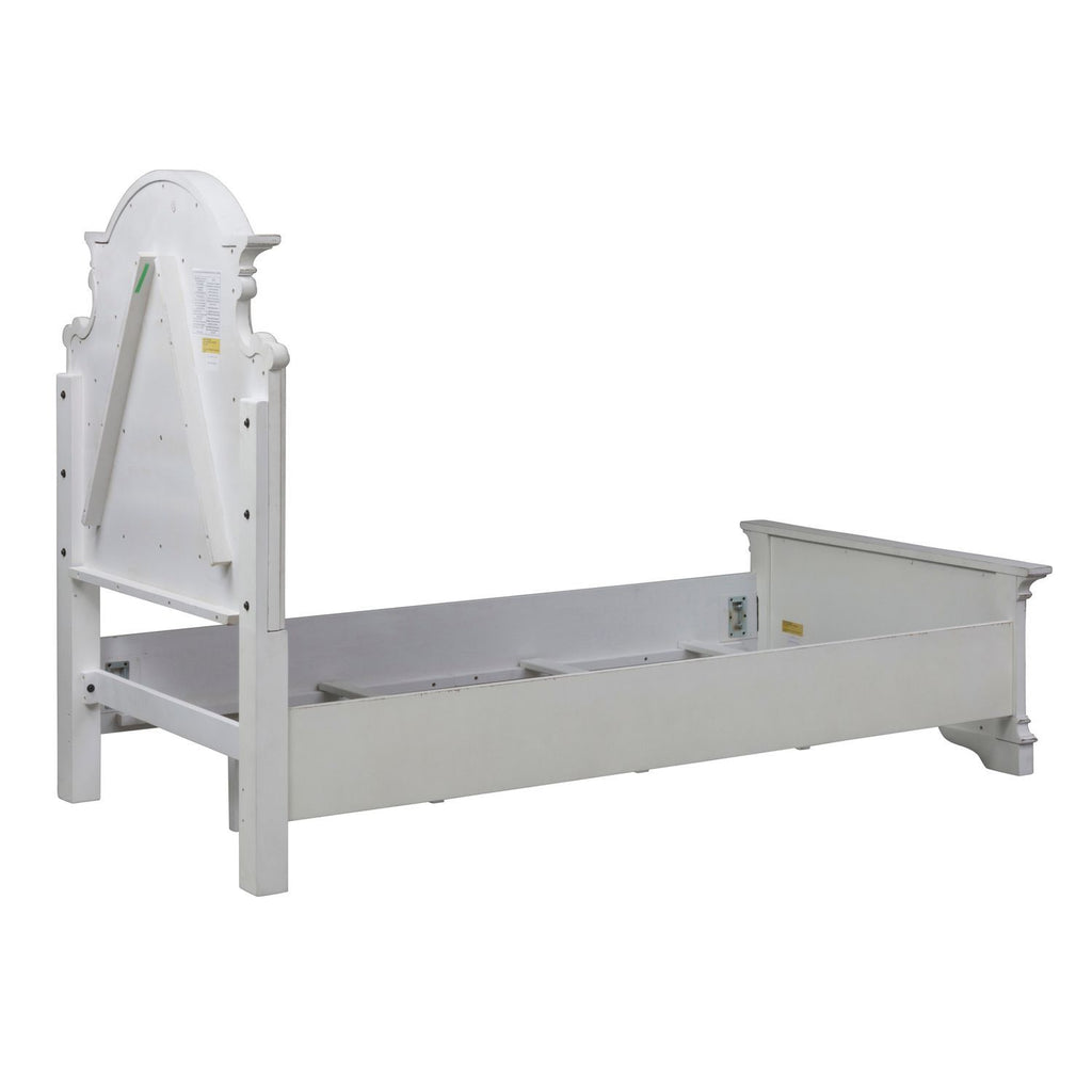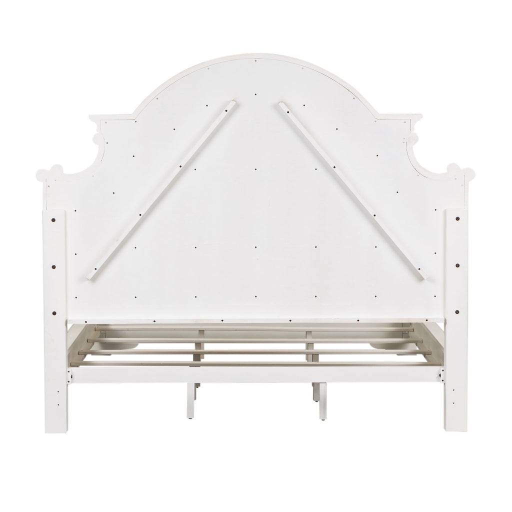 Accent your bedroom with the perfect blend of European Traditional design, using this unique upholstered panel bed. Upholstered in tufted chenille, laced with tones of threading, this bed features an antiqued finish with heavy chipping. The arched crowning and dog bone accents on each corner effortlessly add both definition and character, completing your look.