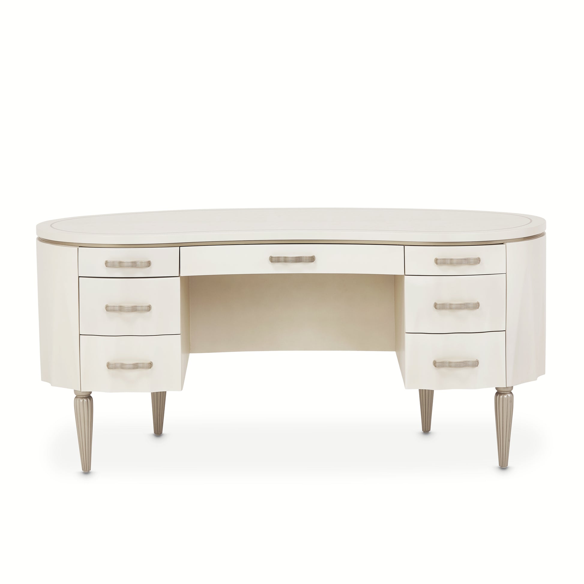 Find your flow with the London Place Desk! With a beautifully curved shape, scalloped sides, and a glowing finish, you’ll get down to business in style!