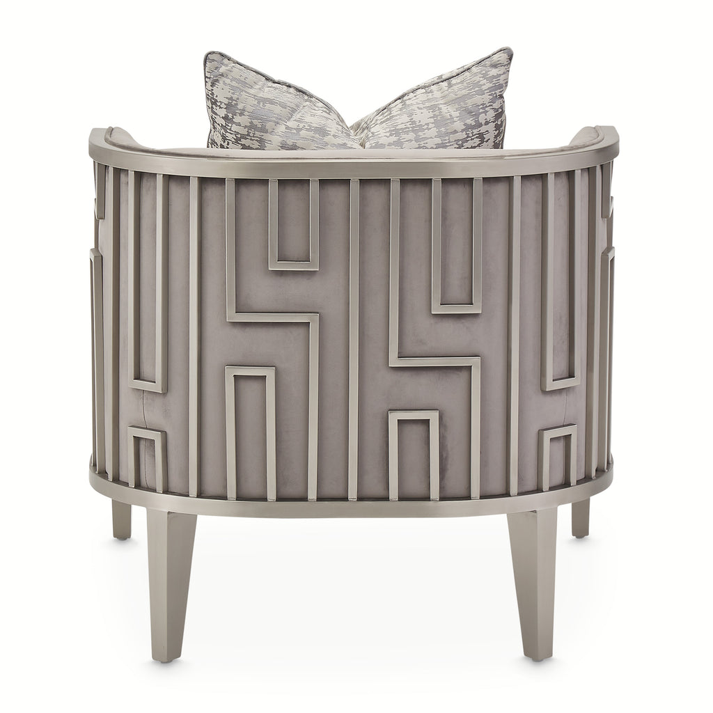 This is style! With a striking geometric frame of stainless steel and a smoky gray velvet seat, this Roxbury Park Accent Chair is the ultimate modern shape for today’s luxury home.