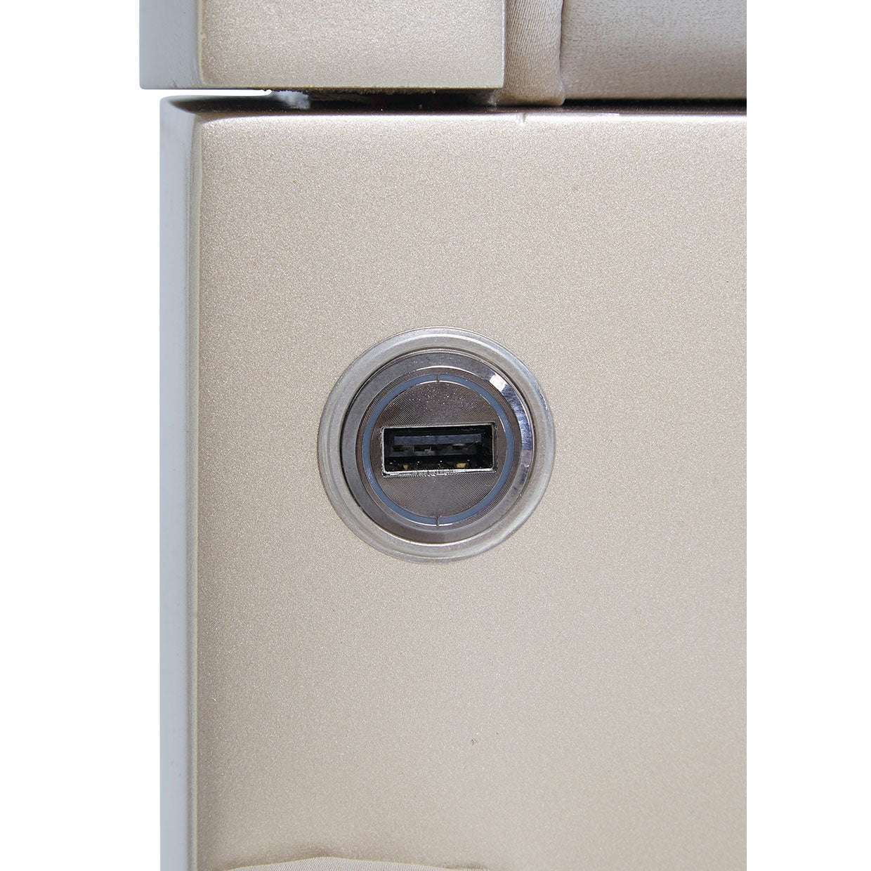 Find your interior glow with the Malibu Crest Scalloped Panel Bed. With a curved fan panel headboard, convenient USB chargers, and silky paneling sure to brighten your home, you’ll be feeling glamorous and elegant all at once.