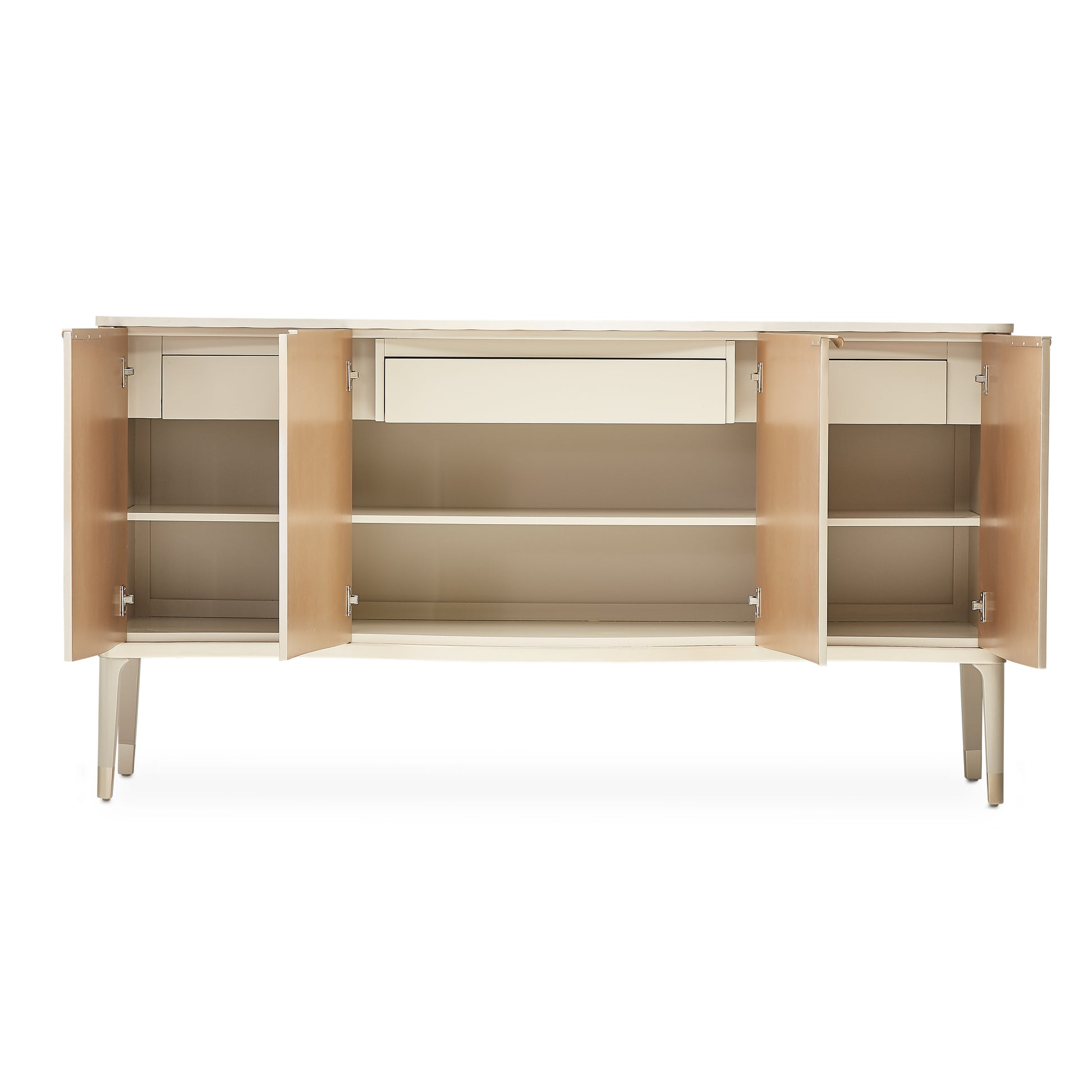 - Sideboard features a maple veneer frame in a Blush finish with Chardonnay accents