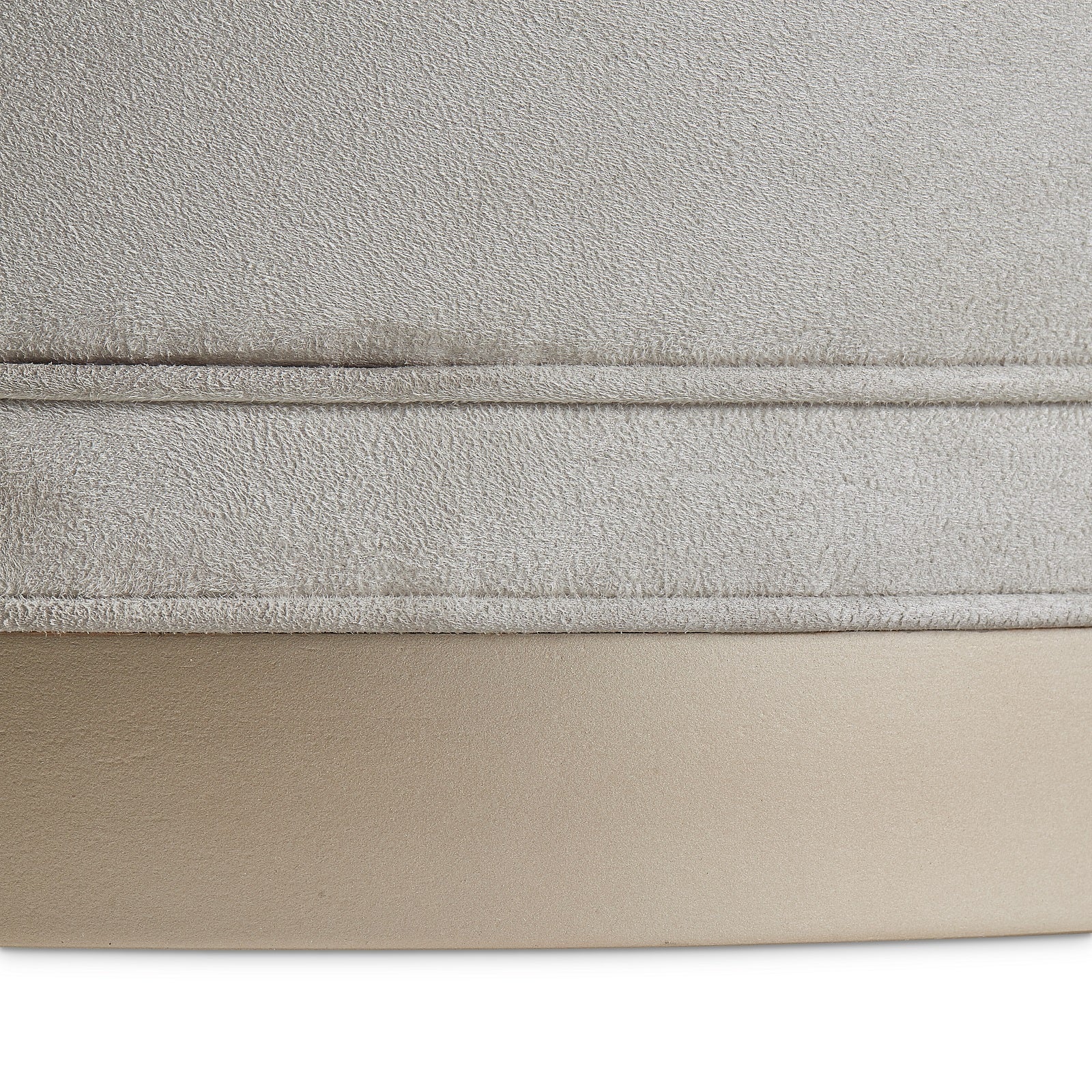 - Ottoman is upholstered in faux suede in a Doeskin color