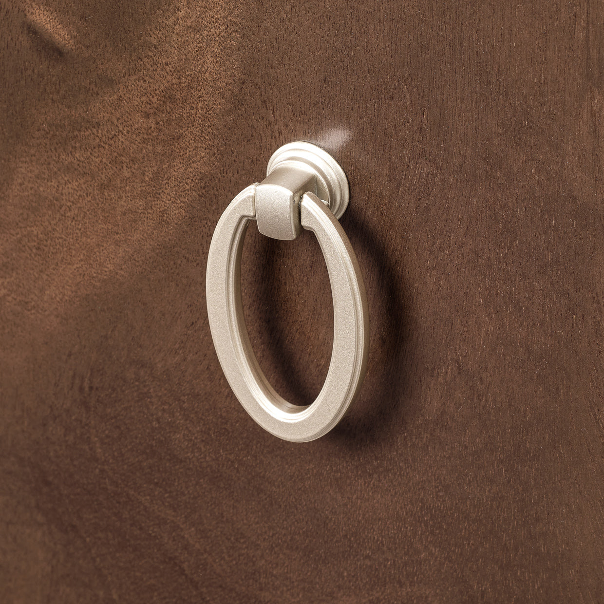 - Hoop cabinet pulls, accents, trims and stretcher are finished in Chardonnay