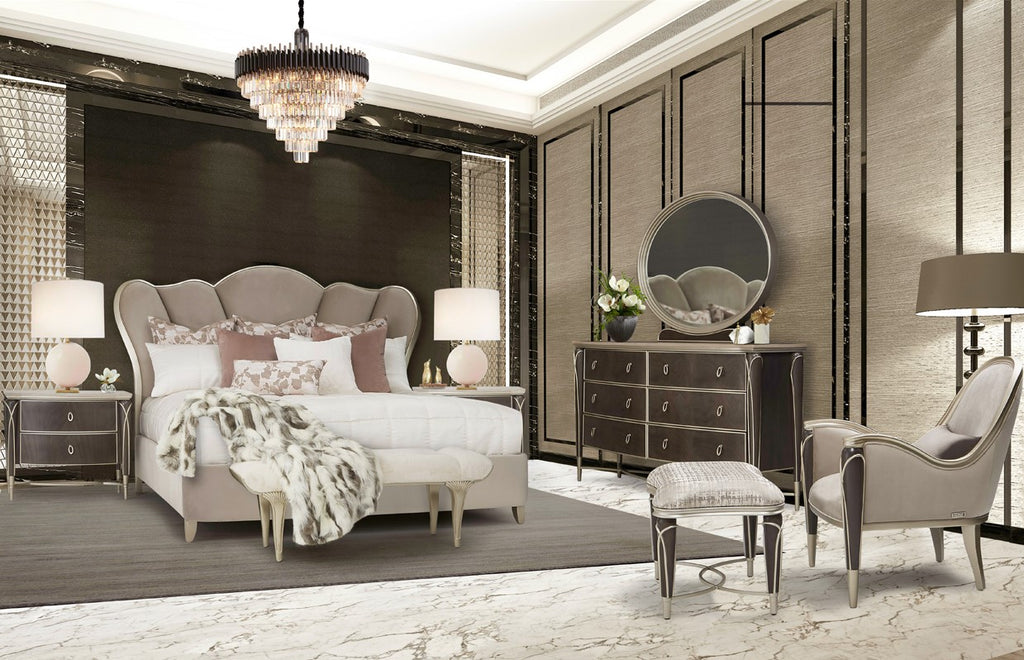 We’re seeing curves for days! With a subtly shaped case front and sweeping accents, the Villa Cherie Dresser and Mirror Set creates a beautiful space for clothes, accessories, and decor.