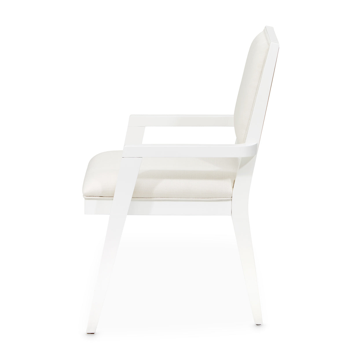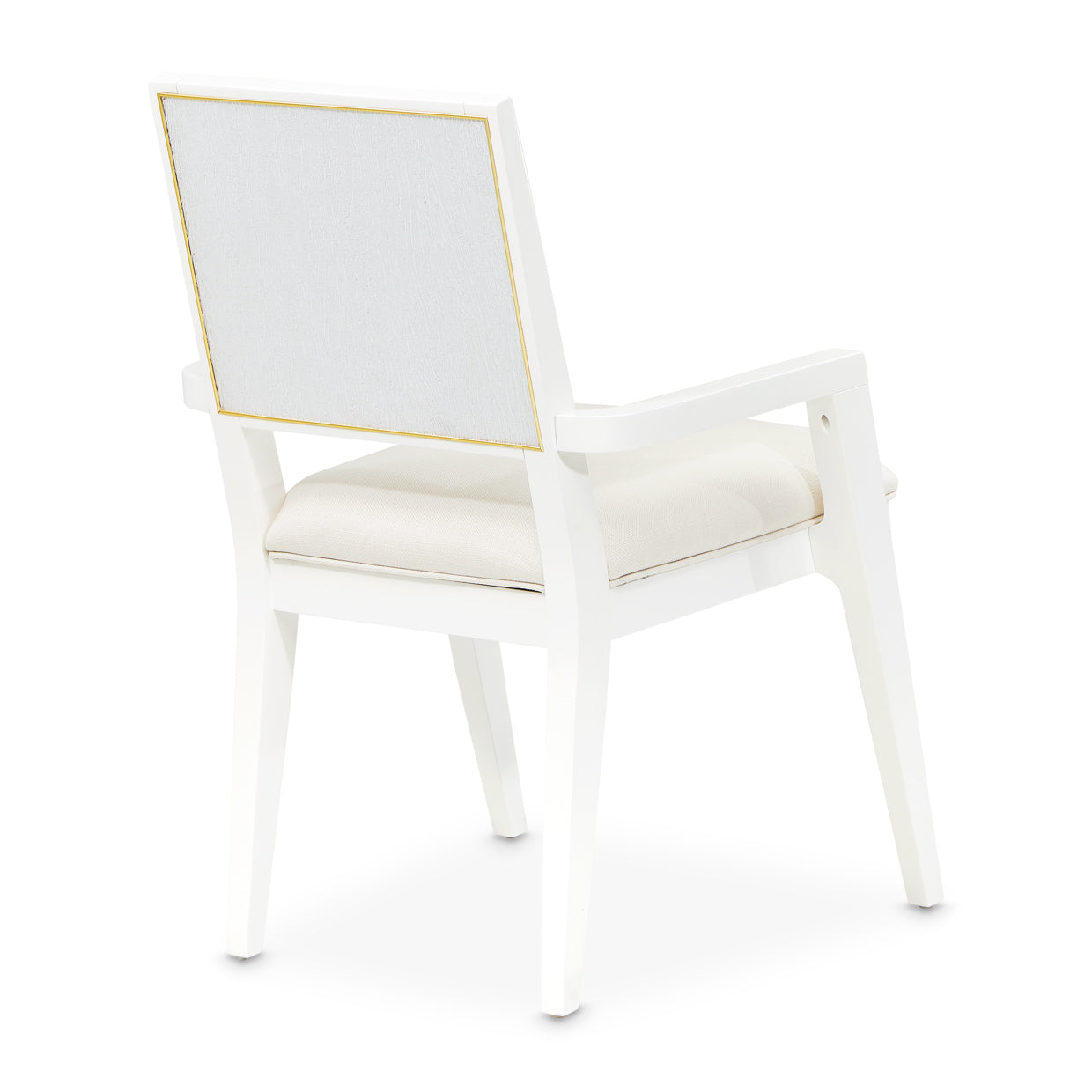 The Palm Gate armchair brings understated elegance to your dining space. Its upholstered back and seat ensure comfort, while the tasteful Japan gold accents enhance its chic appeal.
