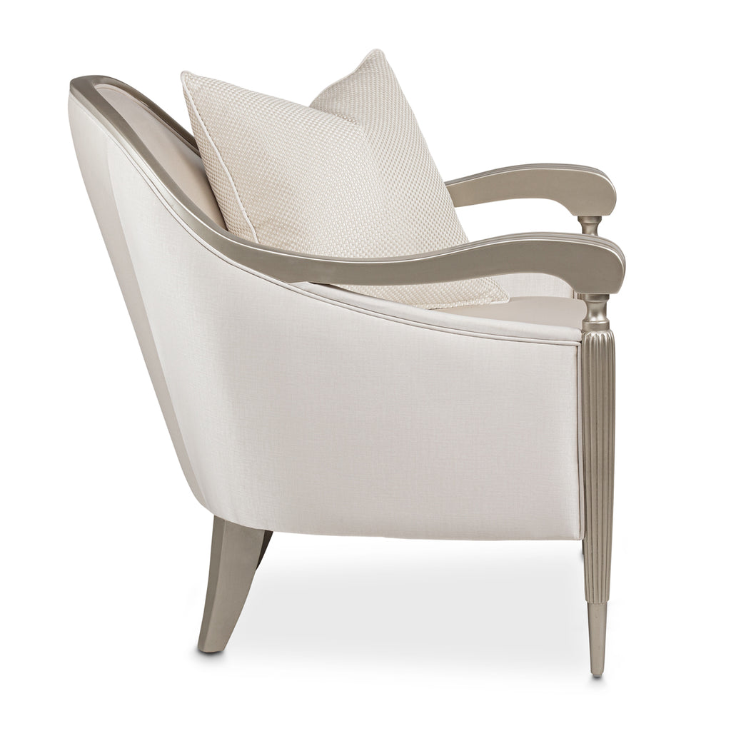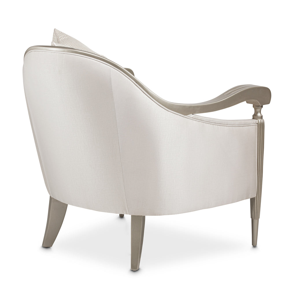 Art deco with a glamorous twist! This London Place Accent Chair brings silky textures and shining champagne colors to your luxury living room. Welcome to modern glam.