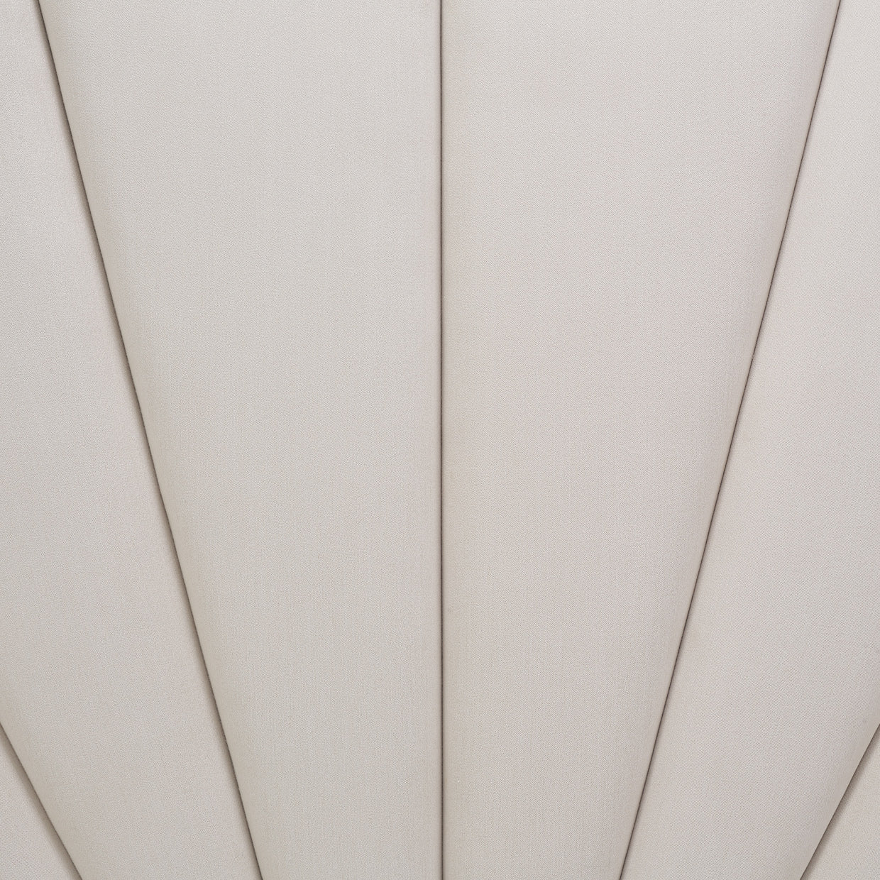 - Headboard and frame are upholstered in a shimmery woven fabric