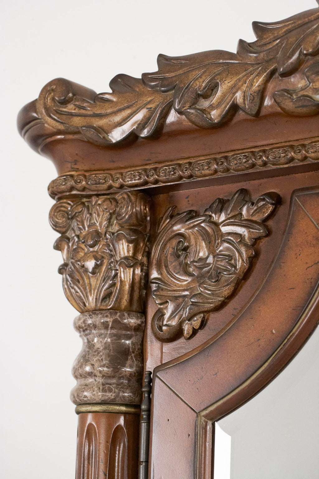 Intricately carved, the Villa Valencia Sideboard Mirror features a chestnut finish which echoes its old-world style. Its ornate beauty and grand scale make it an excellent choice.