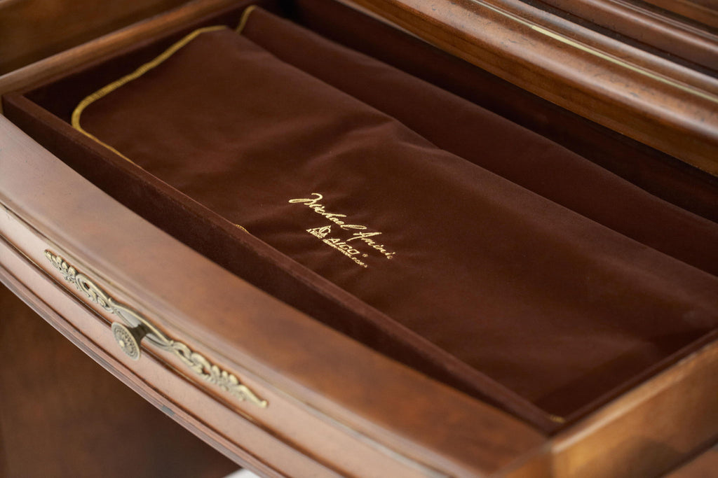 - (3) Velvet lined drawers | (1) Drawer contains a tarnish resistant silverware caddy