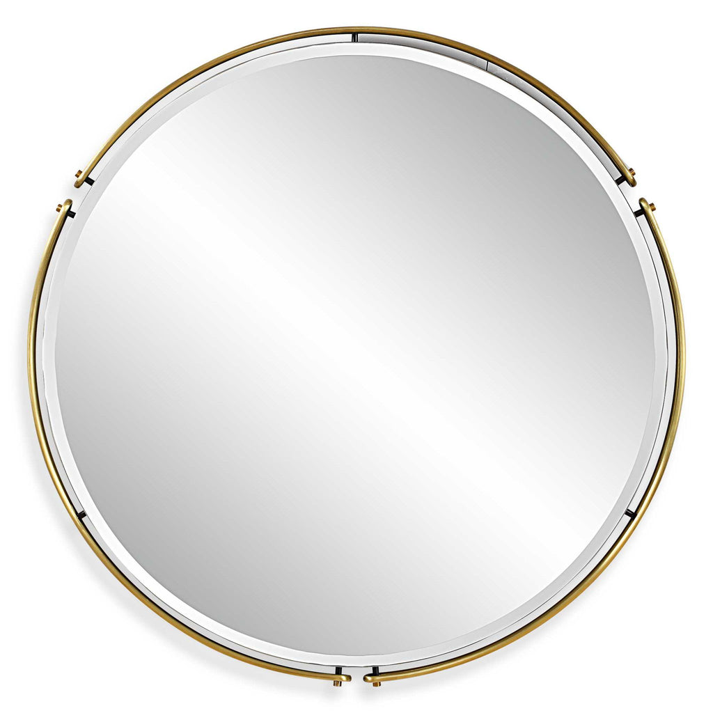 Showcasing Decorative Double Iron Outer Bands, Finished In Plated Antique Brass, The Wesley Round Mirror Adds A Touch Of Classic Elegance To Any Space. The Piece Is Accented By A Generous 3/4" Bevel.